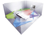 [%TAB%]Lényeges kellék még az infrás távirányító. A távvezérlő nem a legszebb formatervezésû darab, szerintünk a hangprojektor szebbet érdemelne. De a funkcionalitásának egyébként megfelel, és kezelési útmutatóban megadott számkódok segítségével számos más gyártó készülékei felett át tudjuk vele venni az irányítást.