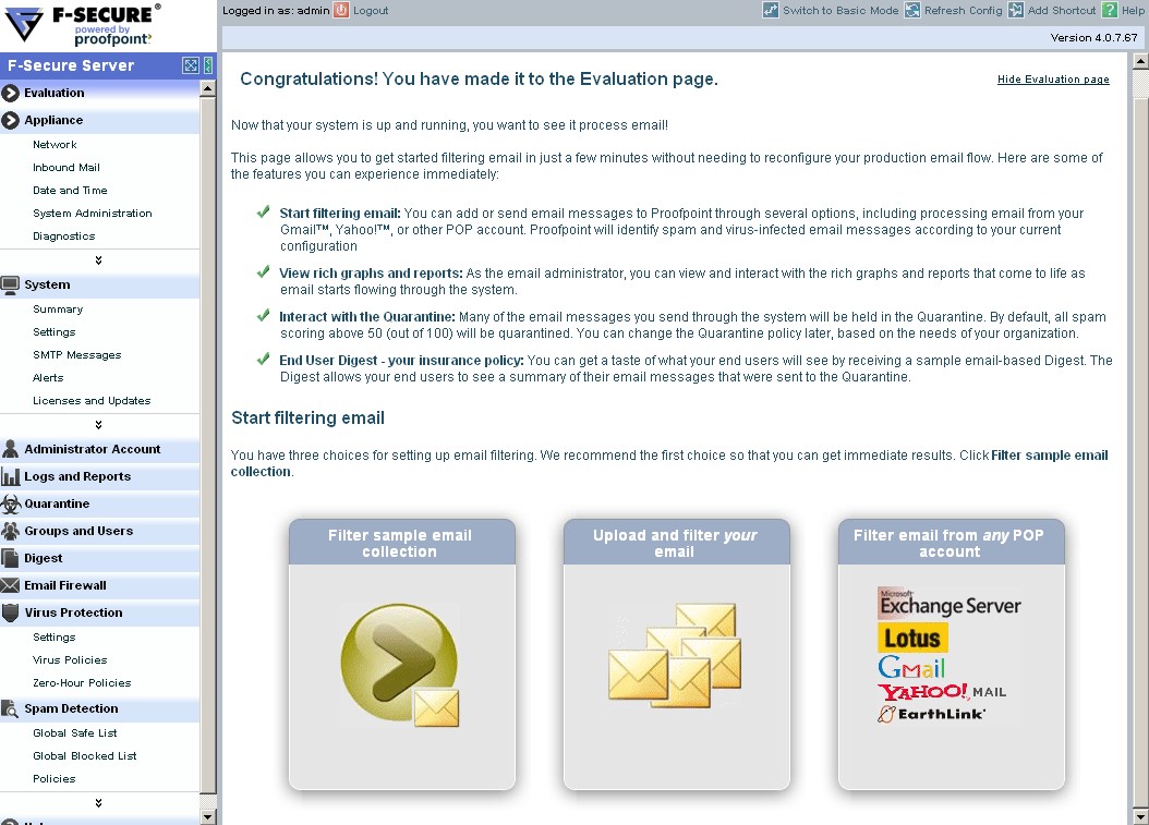 biztonsági berendezés, mely azelőtt képes kiszürni az esetleges veszélyeket mielőtt azok gondot okozhatnak az egyes e-mail fiókokban vagy a levelezésben. A telepítés és konfiguráció meglehetősen egyszerü. Az eszköz egy Proofpoint Protection Server 4 nevü speciális