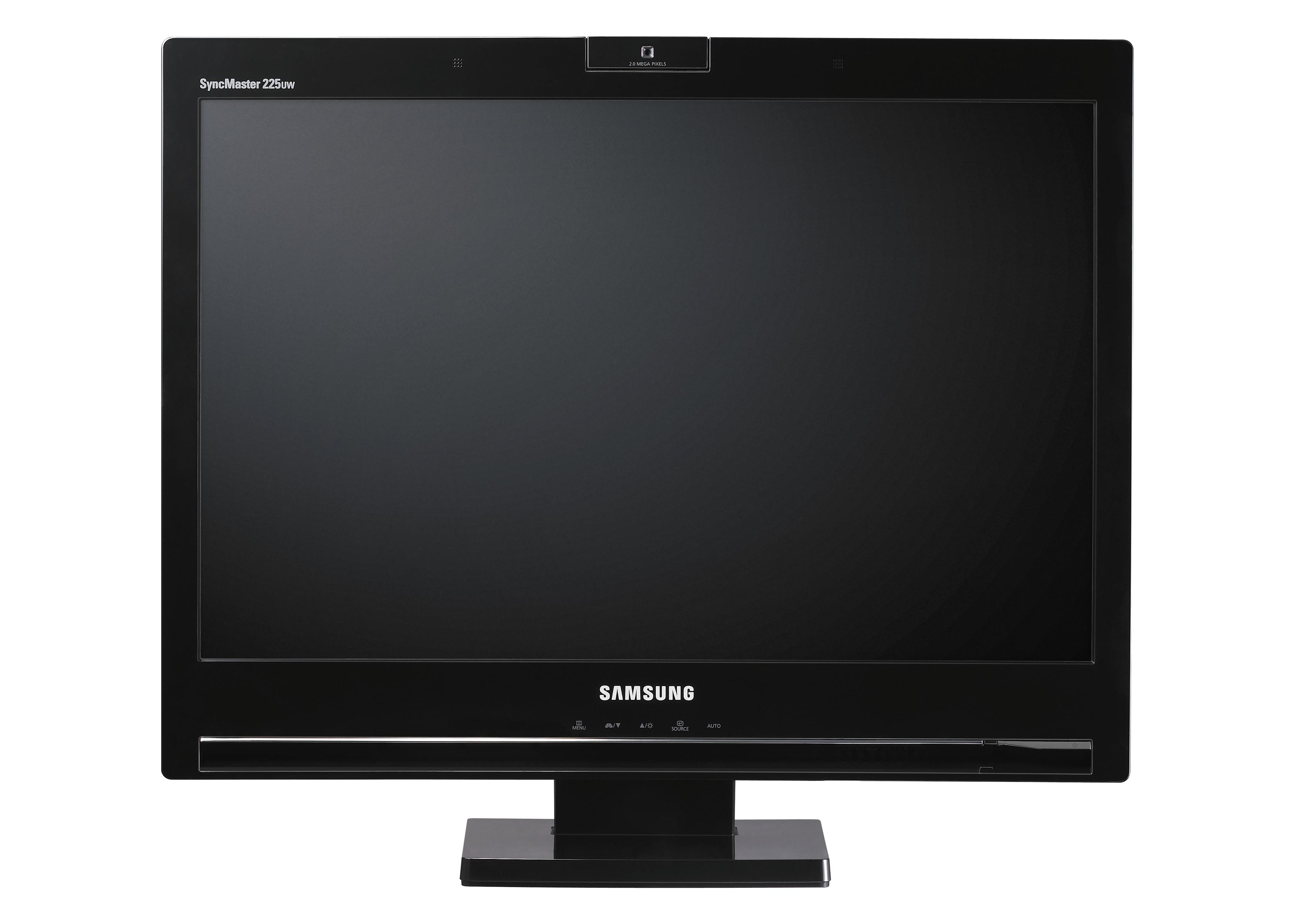 Az első benyomások kellemesek: tiszta vonalvezetés, elegáns forma és természetesen a 16:10-es arányú nyújtott képernyő a fő jellemző. A készülékház lakkfekete színü, a káva alja elől ezüst betéttel. A kivitel gusztusos, még a legválogatósabb managereknek sem lehet kifogásuk, a kinézet miatt. Sajnos ezt a modellt sem látták el a képernyőforgató mechanikával, pedig irodai munkánál előnyére válna. Ötletes a beépített webkamera, és a beépített mikrofonok is jó szolgálatot tehetnek. Érdekes, a sztereó hangszórók elhelyezése, mert a kíváncsi szemek elöl az LCD panel alá rejtették őket. A kezelőszervek a megszokott helyen találhatóak: középen a képernyő alján. Ebben nincs semmi különleges, viszont a 225UW vezérléséről a SyncMaster szériában elsőként, érintőgombok gondoskodnak. A megfelelő parancs elfogadását hangjelzés is megerősíti, az érintőgombok kivitele pedig finom eleganciát kölcsönöz a monitornak. Az OSD menü kezelése egyszerü és logikus, sajnos magyar opció nincs a nyelvi beállítások között. Az automatikus beállítás igazán már csak némi finomhangolást igényel. A hátlapon találhatóak a csatlakozási lehetőségek: