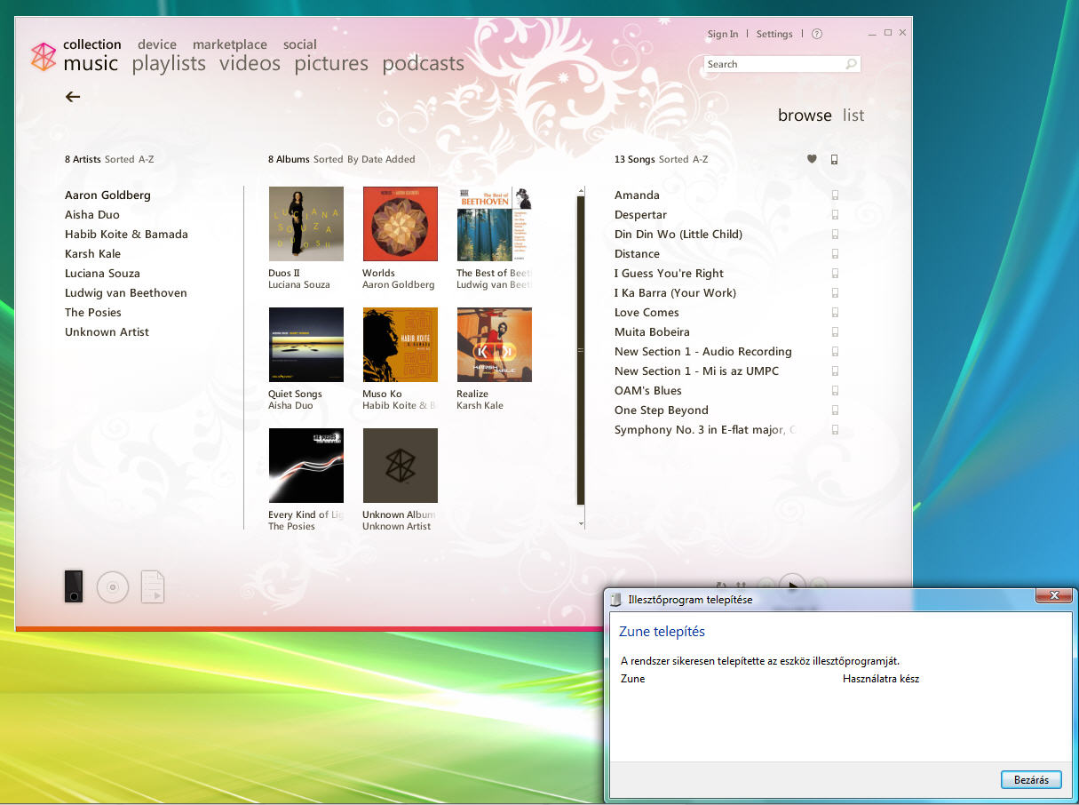 jóval kevesebb tudásúnak tünhet de funkcióiban hibátlanul müködő képes. Mindkét alkalmazásban egyformán vannak praktikus öltettek, de a Zune szinkron programjának használata nekünk jóval egyszerübbnek tetszet. Mivel a Zune hivatalosan kizárólag az USA-ban kapható így az iTunes-hoz hasonlóan ezen a felületen sincs lehetőségünk a zeneszámok megvásárlására az online áruházon keresztül.Kinek ajánljuk