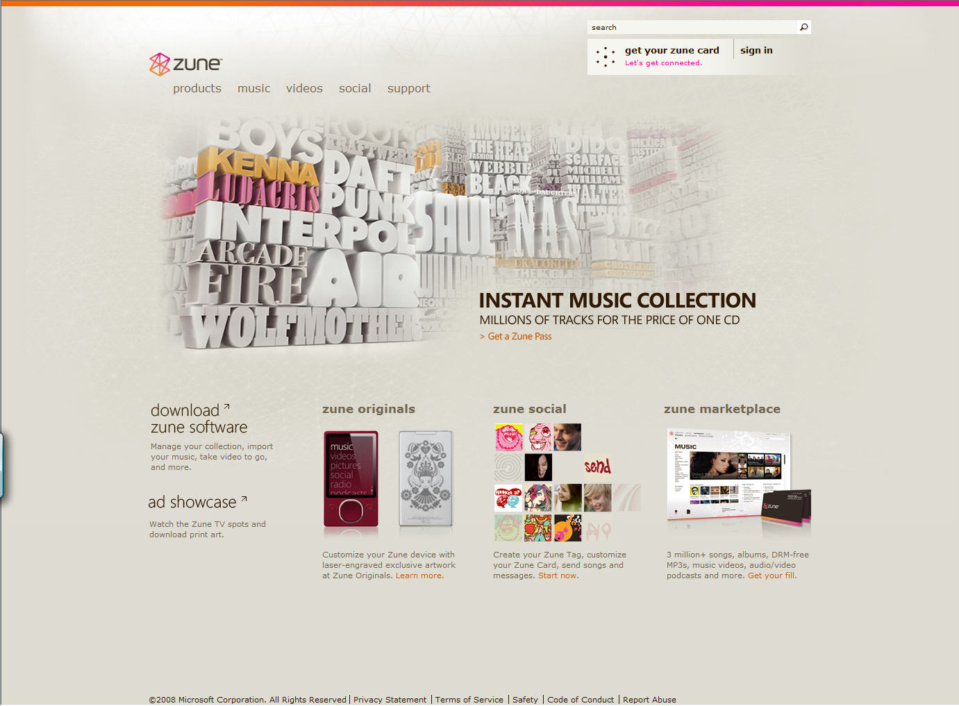 Egy média lejátszó tesztelésekor – még ha egy Microsoft termékről is van szó – nehéz elkerülni az Apple etalont teremtő termékeit, így most mi sem tesszük ezt másképpen. A menü rendszer egyszerü jól áttekinthető felület ad, ezáltal a felhasználóknak még az iPod menüjénél is egyszerübben értelmezhető. Hét menüpontot találunk a főmenüben ezek a következőkből állnak: music, video, pictures, social, radio,
