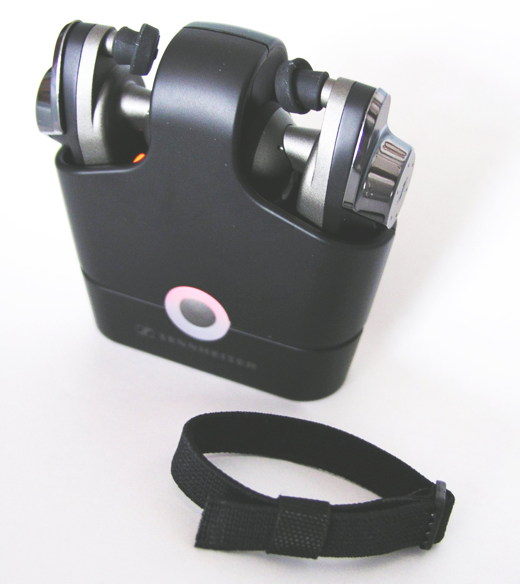 lejátszóról. Az adóegység hordozható médialejátszó, vagy telefonhoz való rögzítésére két lehetőségünk van, az egyik egy állítható pánt, a másik pedig egy közönséges gumiszalag. Mindkettő amolyan kényszermegoldásnak tekinthető, és távolról sem elegáns.Az eszközök töltését egy