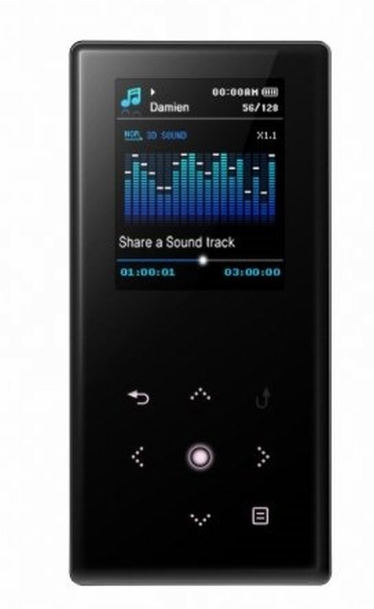 176 x 220 képpont „megvilágosodik”. Ez alatt/mellett a tartás függvényében helyezkedik el az érintésre előtünő kezelőfelület. Az alsó/oldalsó részen az USB csatlakozót (tölt is), és a fejhallgató kimenetet találhatjuk. Bekapcsolást követően választhatunk: zenehallgatás, filmnézés, fotónézegetés, rádió, egyéb funkciók (szöveg, hangfelvétel, játék, ébresztés, világóra és vonalbemenet