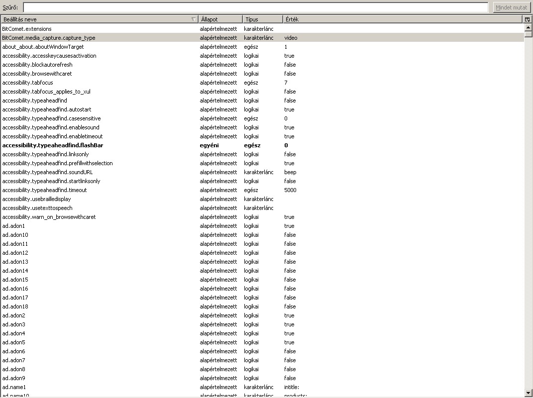 méretéhez képest automatikusan szabályozza ezt az értéket. A beállítás nem létezik az about:config-ban így létre kell hoznunk a szokásos módon. Ha 0-át adunk meg akkor kikapcsoljuk a gyorsító tárat. A beállítás értékének a gyorsító tár méretét kilobyte-okban kell megadnunk. Az értéket csökkentve javulhat a gép teljesítmény ha kevés a fizikai RAM, de ekkor növekedni fog a lap betöltési sebesség. Növelhetjük is a méretét a gyorsító tárnak, de 10% fölé nem javasolt menni mert ez már hatással lehet más programok futási idejére is.