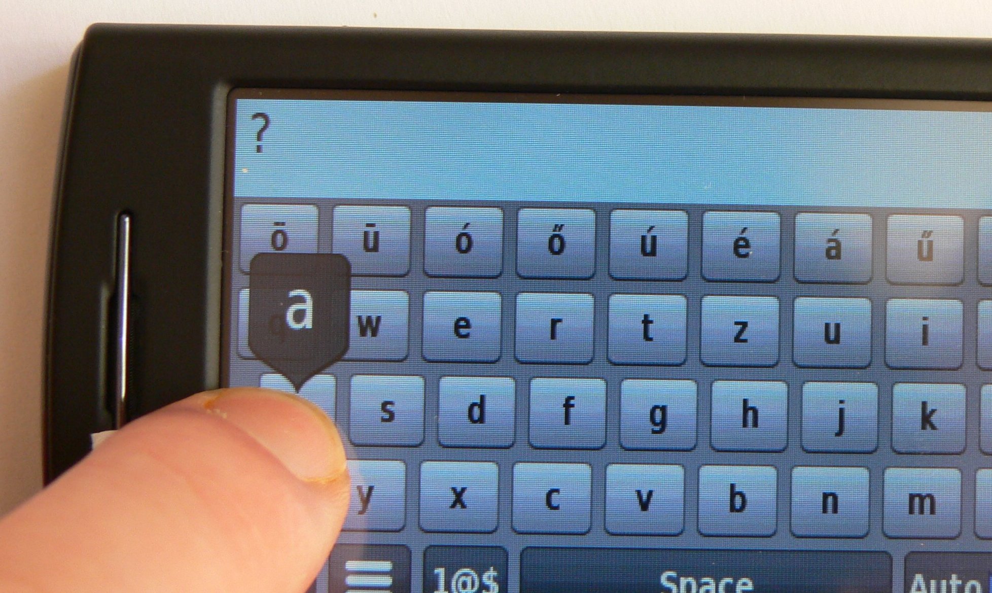 billentyüzet áll rendelkezésünkre, ahol a magyar ékezetes karakterek a legfelső sorban találhatóak, nem pedig külön oldalon, ami nagyban segíti a gyorsabb szövegbevitelt. Böngésző