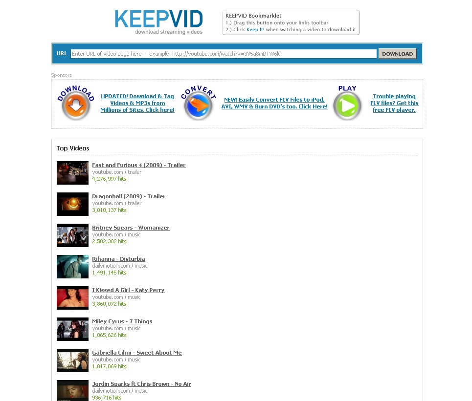 Az első megoldás inkább akkor hasznos ha mindössze néha napján szeretnénk egy-egy videót leszedni. Ekkor ha megvan a kiszemelt videó másoljuk le címsorban található teljes címét, majd látogassunk el a [%A=http://keepvid.com/%]http://keepvid.com[%A%] oldalra. Ott találunk egy URL-mezőt ahova be kell illesztenünk a videónk címét majd kattintsunk a „download” vagyis letöltés gombra. Ezt követően egy új lap jelenik, meg ahol választhatunk a rosszabb minőségü
