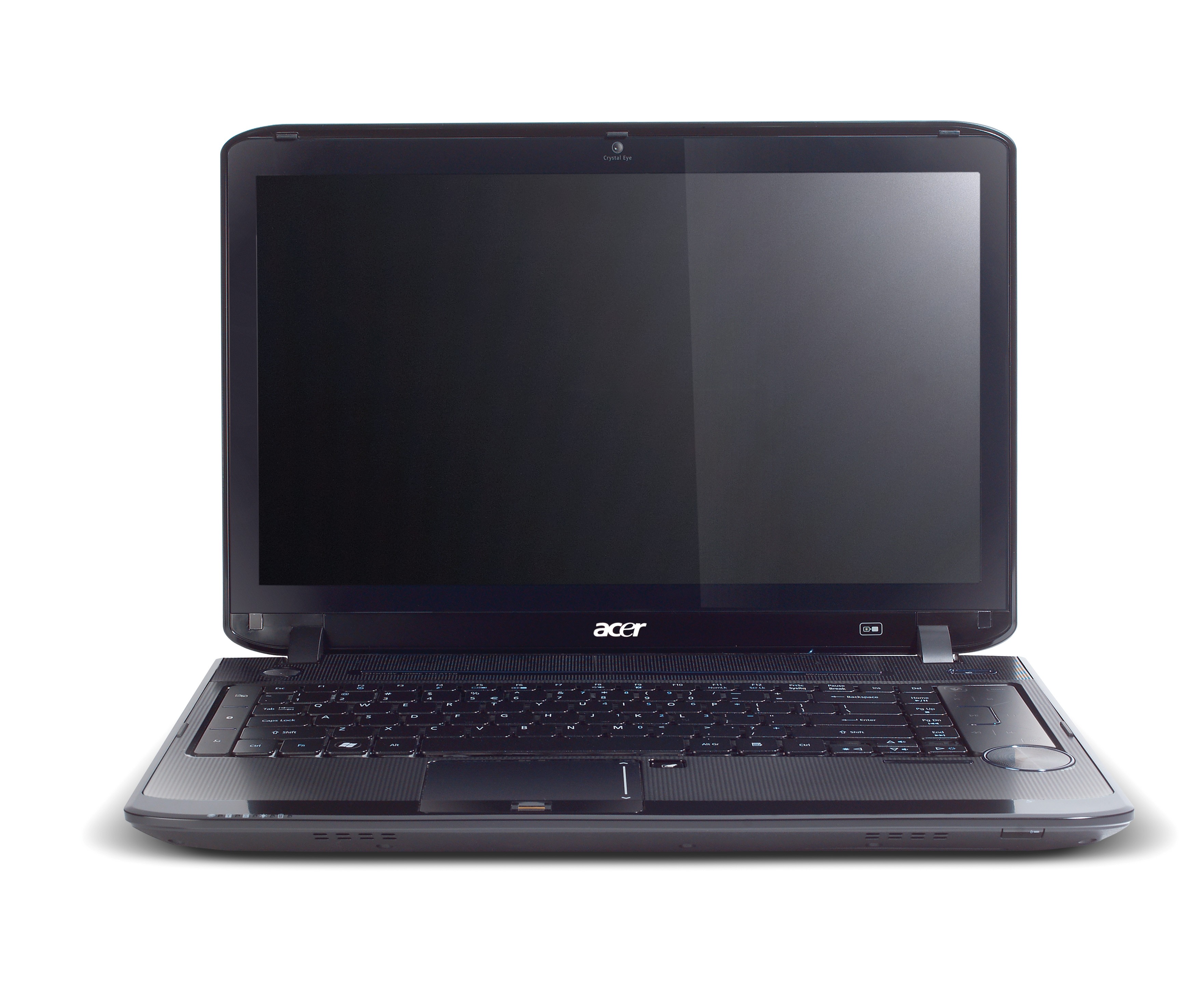 valamint az Acer Backup Manager indító gombja kapott helyet a jobb oldalra pedig egy teljes multimédiás vezérlőpanel került, külön gombbal az Acer Arcade Deluxe mutlimédiás keretprogram indításához, valamint némító és az érintőpanelt kikapcsoló funkciókat is találunk. A hangerőszabályzó hasonlóan a Toshiba Qosmio családnál láthatóhoz, vagyis egy nagy körkörösen tekergethető tárcsa, melynek használata igen kényelmes és sokkal jobb, mintha ez is érintés érzékeny lenne, habár a tárcsára nem azonnal hanem egy kis késéssel reagál a rendszer. A billentyüzet feletti bal felső sarokban találjuk a bekapcsoló gombot, mely kéken világít, valamint ha hálózatról üzemeltetjük a gépet, egy vízszintes kék sáv is kigyullad.
