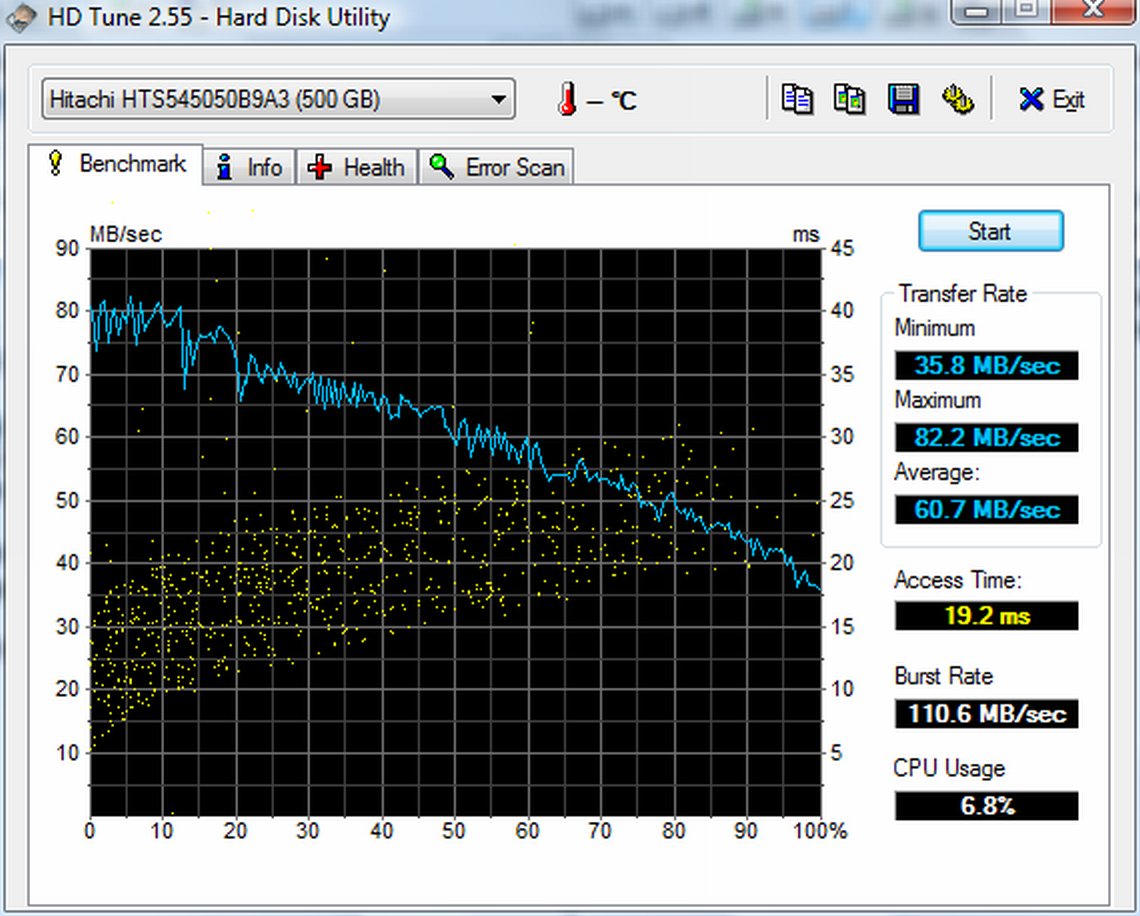 A tesztmodellünk 500 GB kapacitású 5400