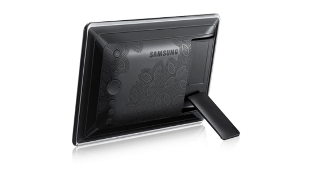 és SD-memóriakártya foglalat. Ezek mellett található a kihajtható, stabil láb, a keret megtámasztásához. A hátlap kerete is csillogó fekete, míg a belseje matt felületet kapott organikus mintázattal, így bármelyik főnöki íróasztalon jól mutat még a vendégek szemszögéből is.[%IMAGE=12132%]Az egész szerkezet felépítése jó minőségü, erős tartást biztosít, így esetleges leejtéskor sem várható komolyabb kár.