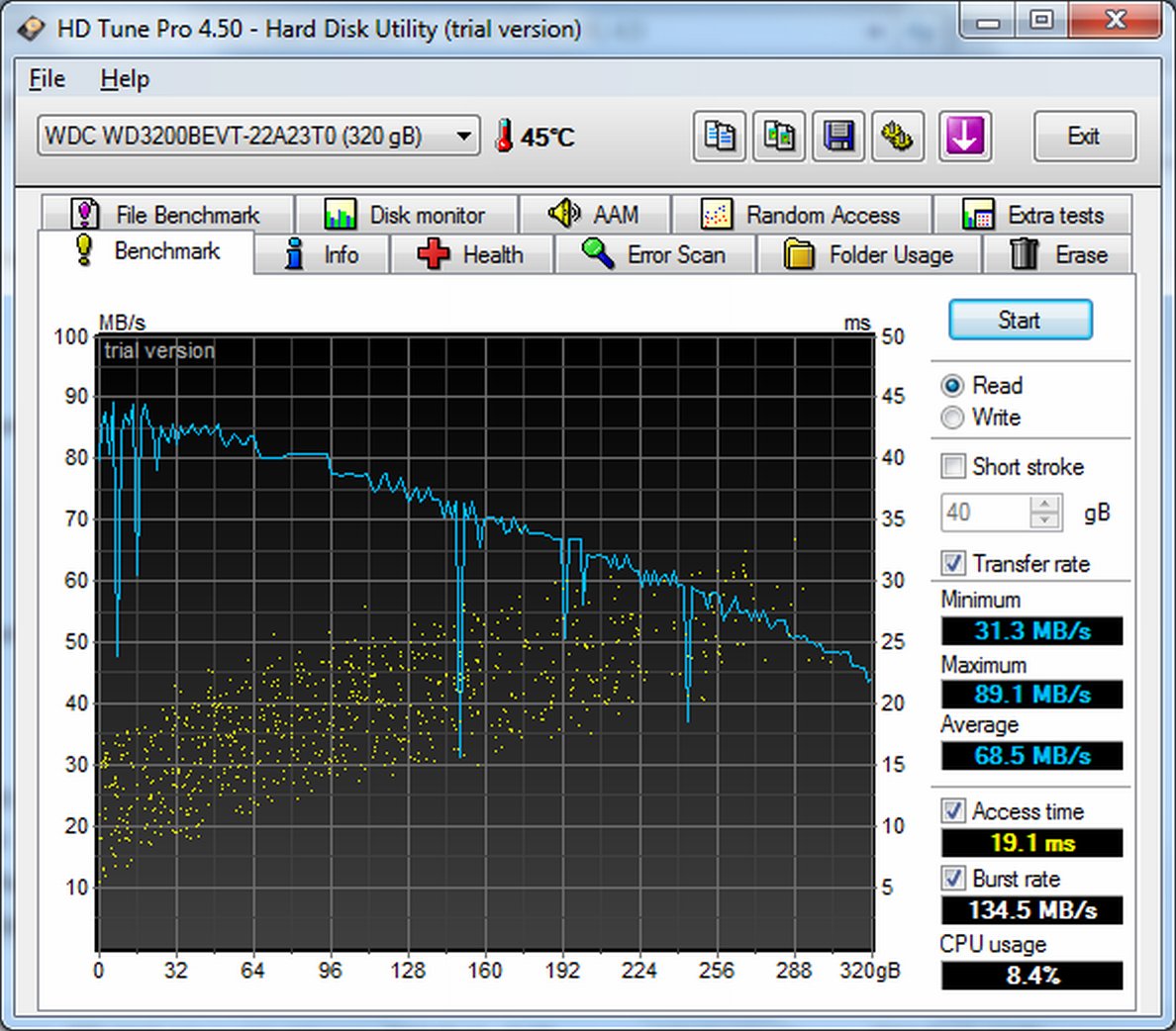 megjelenítőt építettek. Ez meglehetősen jól használható munkafelületet biztosít, és tiszta éles képet láthatunk. A tesztmodellünkben 2.5 colos Toshiba 320