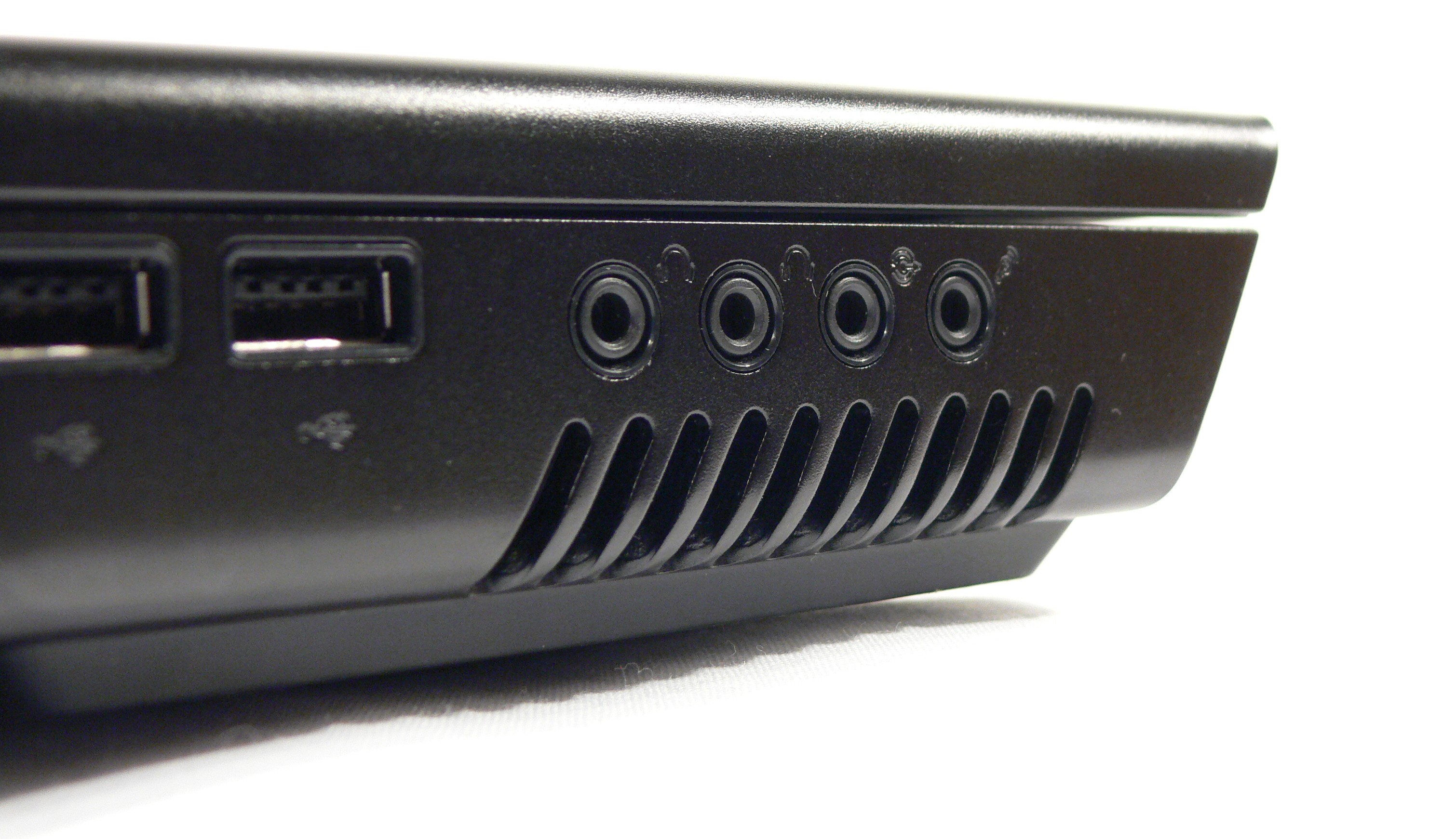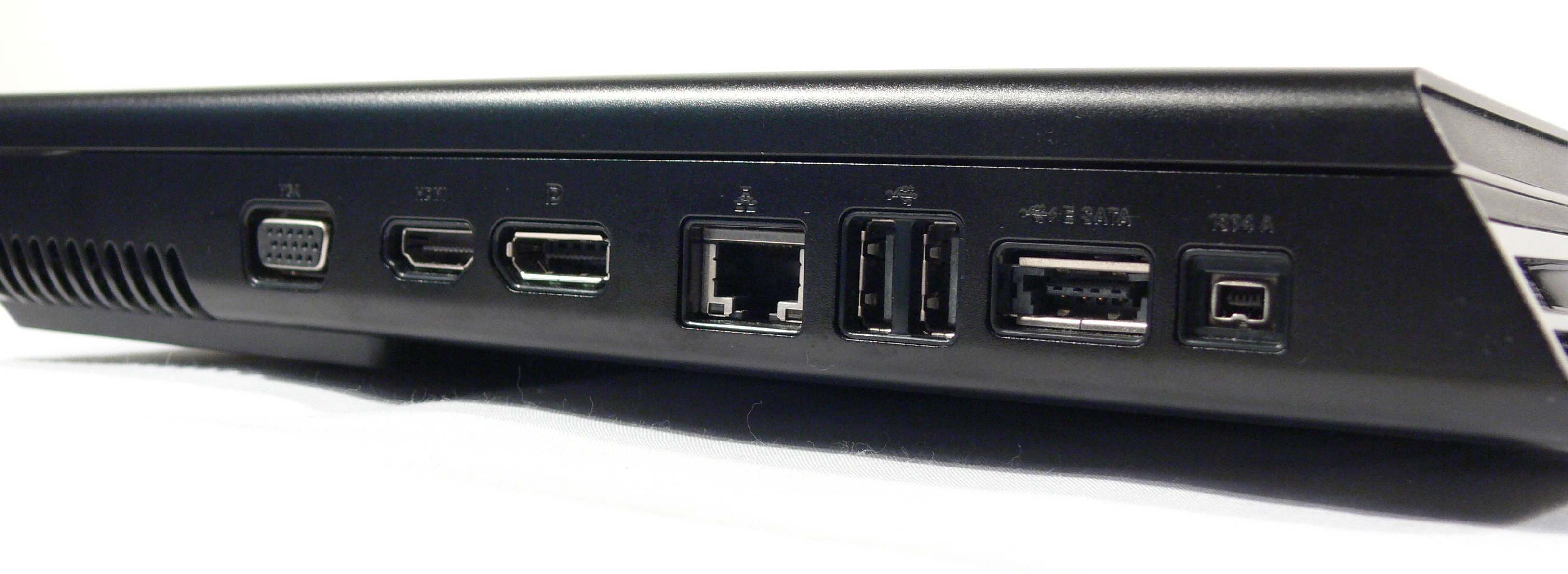 sorakozik egymás mellett. A laptop jobb oldalára az optikai meghajtó társaságába kerültek az audio kimenetek, melyek közt két fejhallgató kimenetet is találunk, illetve két további USB kapu.A portok elrendezéses jónak mondható, habár az USB kapuk lehetnének egy picit szellősebben, illetve az ExpressCard illesztő túl közel található az optikai lemez nyíláshoz, mely így néha zavaró lehet. A tápcsatlakozó a gép hátulján, középre került, melyet megtalálni sem egyszer? és nehezíti a laptop elhelyezését is.