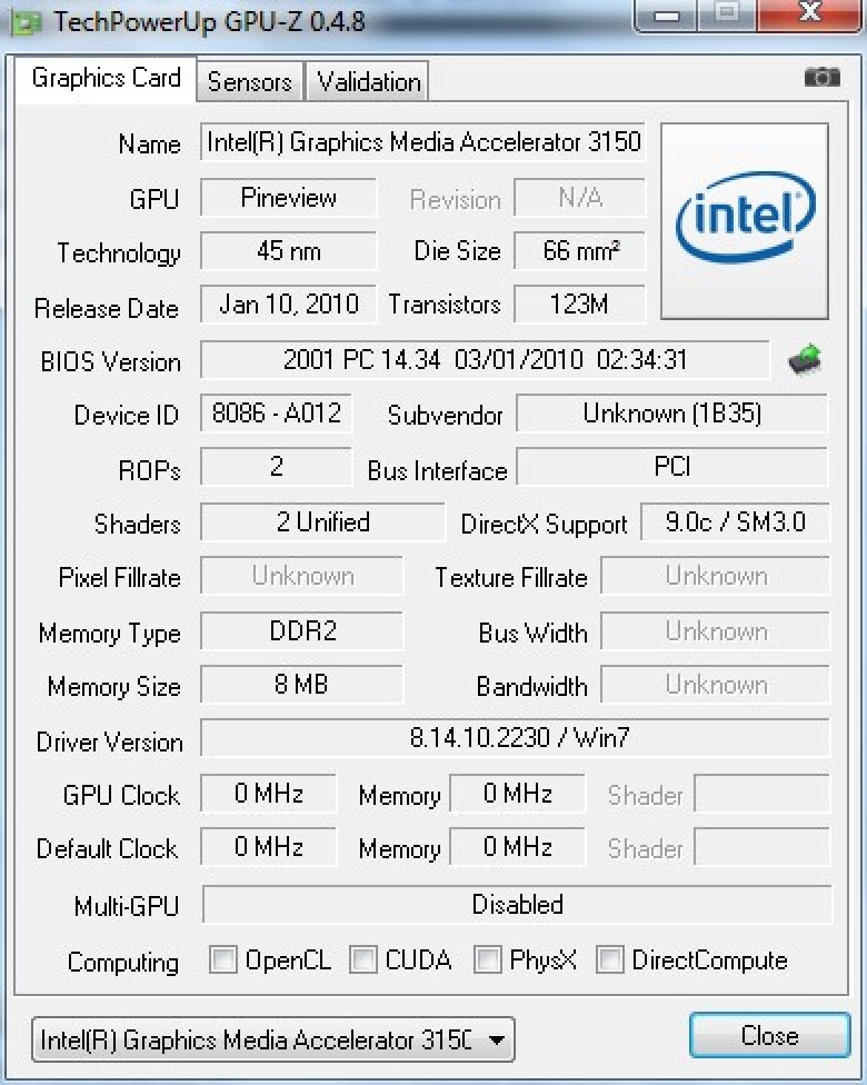 magot tartalmaz, képes a kétszálú végrehajtásra a HyperThreading révén. A CPU mellett Intel NM10 lapkakészlet és 1 GB