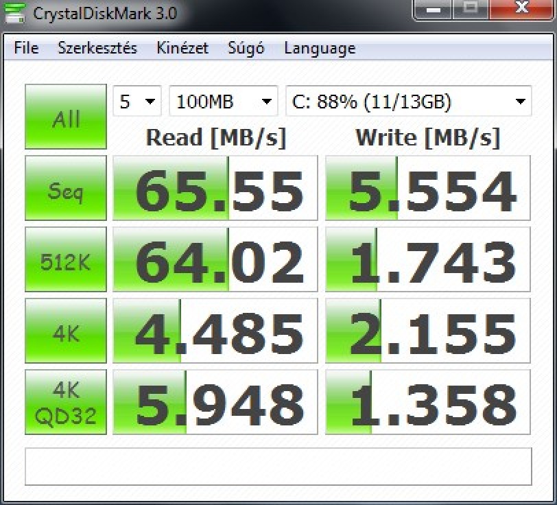 -os változatát kapta, mely fele egy szabványos 1.8 colos tárolónak. Tesztmodellünk helytakarékos modulja olvasási sebessége kicsivel elmarad az 5400 rpm