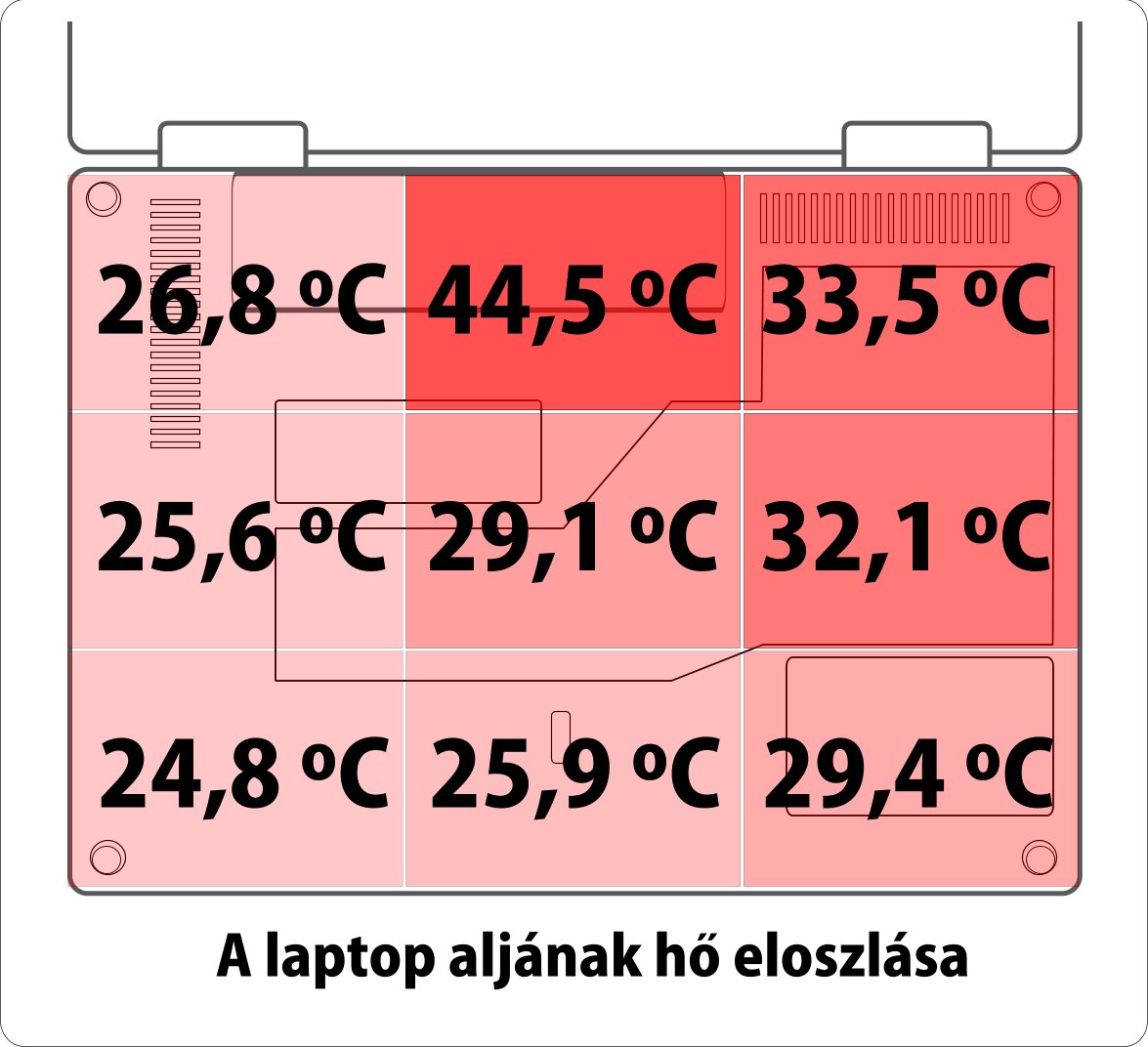 [%IMAGE=15794%]Erős, tartós terhelés esetén a laptop amúgy kifejezetten csendes h?tőrendszere bizony hallatja hangját, amire szükség is van, mivel például