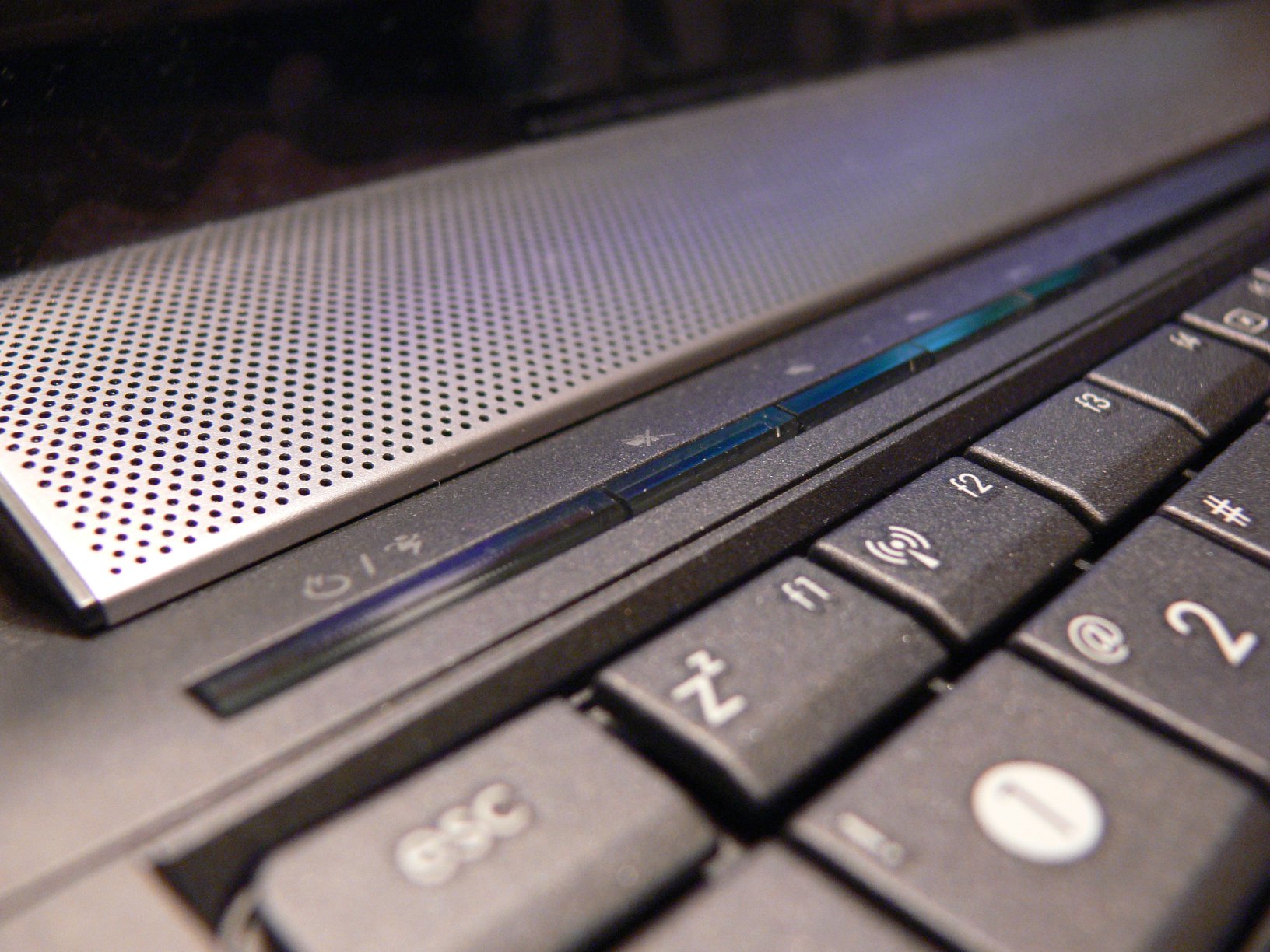 [%IMAGE=15845%]A billenty?zet és a hangszórók sávja között balra találjuk a multimédiás vezérlő gombokat, melyek az ASUS modelleknél visszatérő keskeny kialakítású gombok egy díszítő sávban egyesítve. Az összes extra gomb egyetlen vékony vonalban helyezkedik el. A státuszjelző