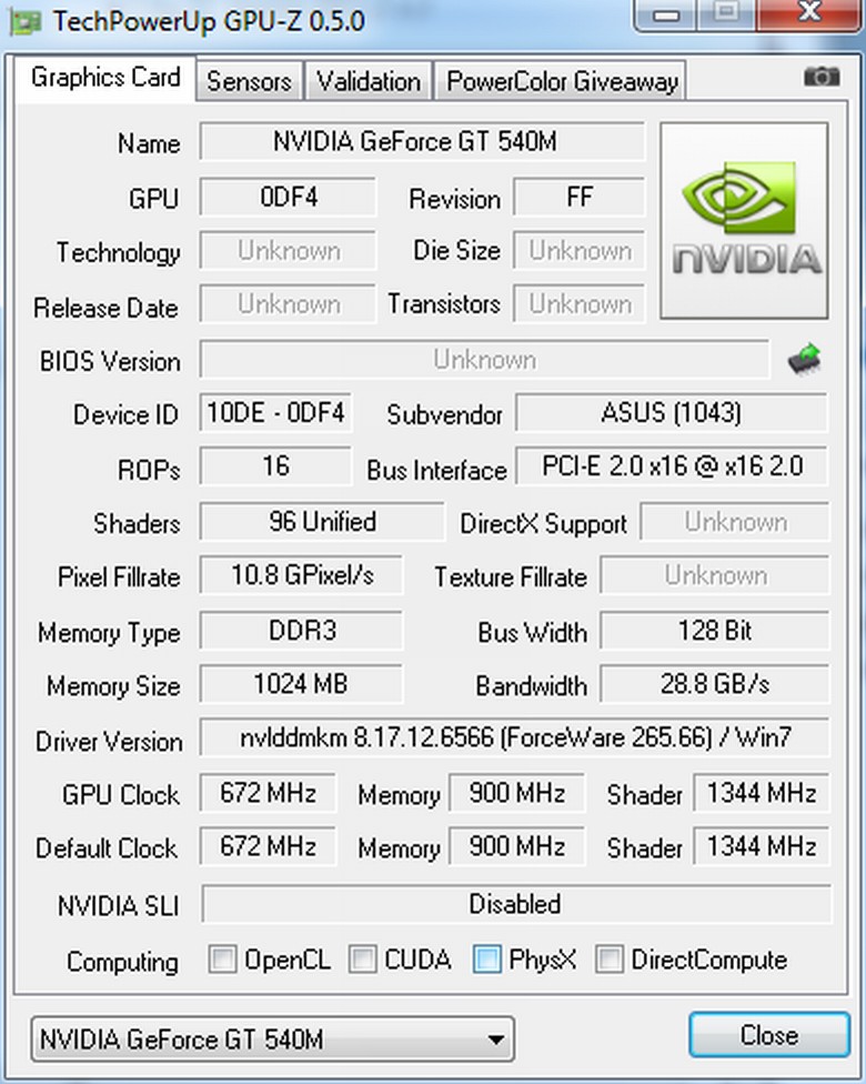 [%IMAGB=15852%]Tesztmodellünkben az NVIDIA GeForce GT 540M megoldása foglalt helyet, mely 1024 saját memóriával rendelkezett. Ez a GPU a laptop 1366x768 képpontos képernyőjéhez megfelelő párosítás, hiszen ekkora felbontáson a legtöbb játékot is magas grafikai beállításokkal képes futtatni a gép. Ezen felül az N53Sv ideális grafikai például PhotoShop munkákra is ahol a VGA kártya segítsége nélkül a laptop az asztali (gyári órajelen m?ködő) Intel Q9550 processzorral szerelt asztali gépek teljesítményével egyenérték? eredményeket produkált (a tesztek 32 bites környezetben zajlottak).