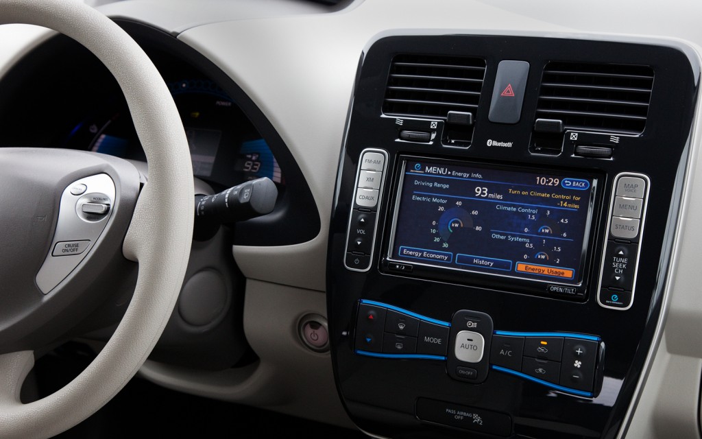 A Nissan Leaf mondhatni a ma már megszokott, kulcsnélküli technológiát használja. Elég, ha a kulcs a táskánkban, vagy a zsebünkben van. Az ajtóhoz közeledve, az autó érzékeli a kulcsot és elég megnyomnunk a vezető, vagy az utas oldalon található kilincsen elhelyezkedő gombot, esetleg a csomagtartót, és kinyitható az ajtó. Beszállás után a START gombra fókuszálunk. Amennyiben nem lépünk a fékre és úgy nyomjuk meg a gombot, csak az info panel kel életre. Egyébként pedig fékre lépés esetén a motor azonnal beindul, és a kilométeróra is életre kel. Megjelenik rajta a legfontosabb tudnivaló a pillanatnyi töltöttség függvényében még megtehető kilométer. Motorzaj abszolút nem hallható.