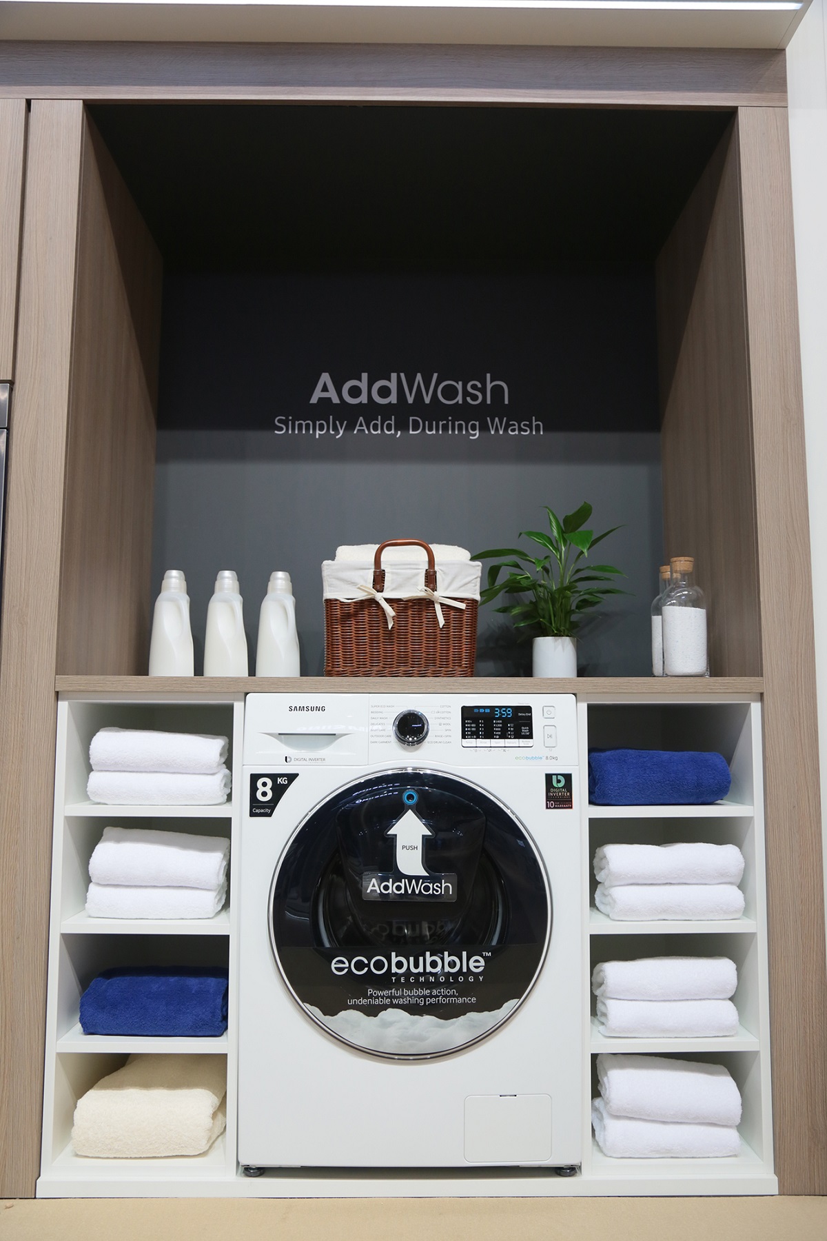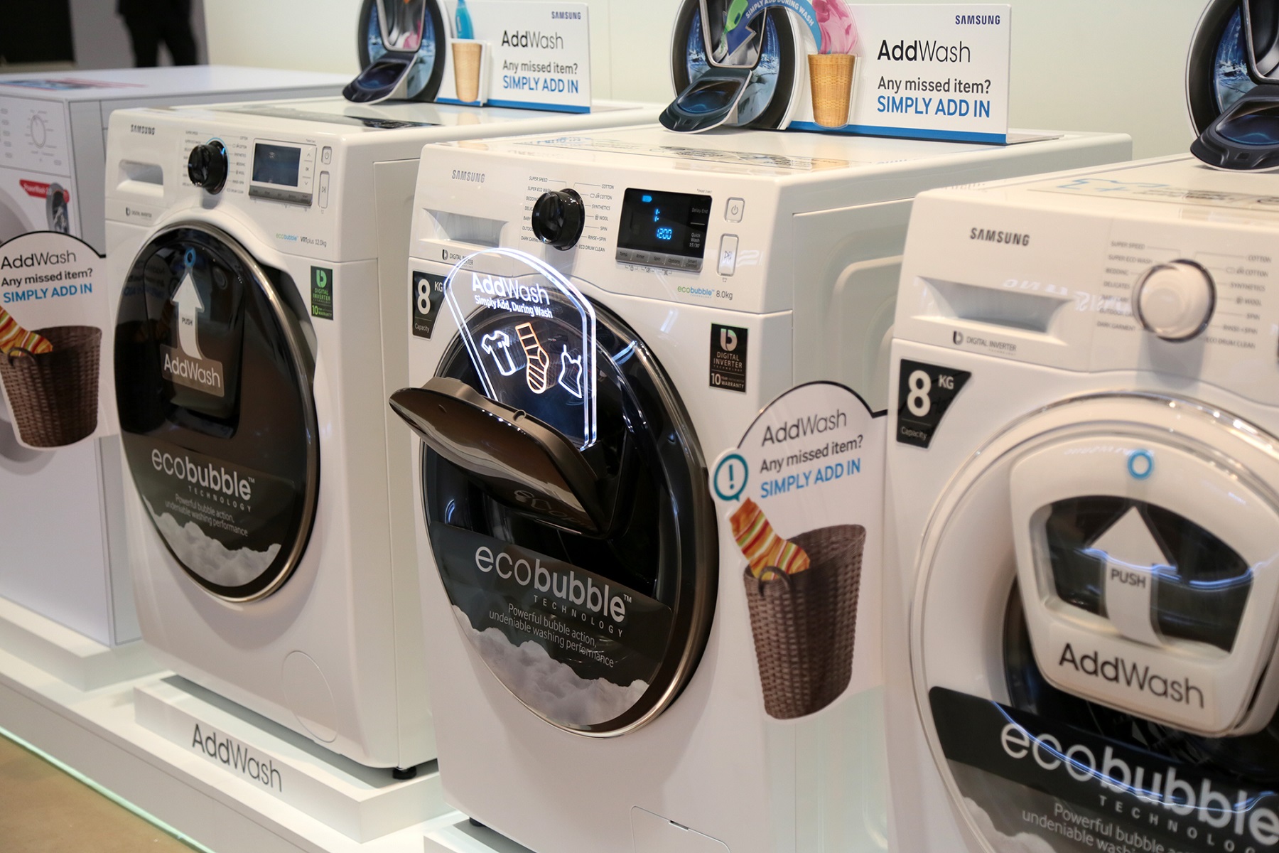 Az AddWash mosógépben a Samsung időtakarékos és hatékony mosást lehetővé tevő innovációja is helyet kapott: a SuperSpeed funkció jóvoltából egy teljes normál mosási program időtartama kevesebb, mint egy órásra csökkent, miközben a mosás minőségét tekintve nem kell kompromisszumot kötni. Az AddWash mosógép ebben hónaptól már elérhető Európában.