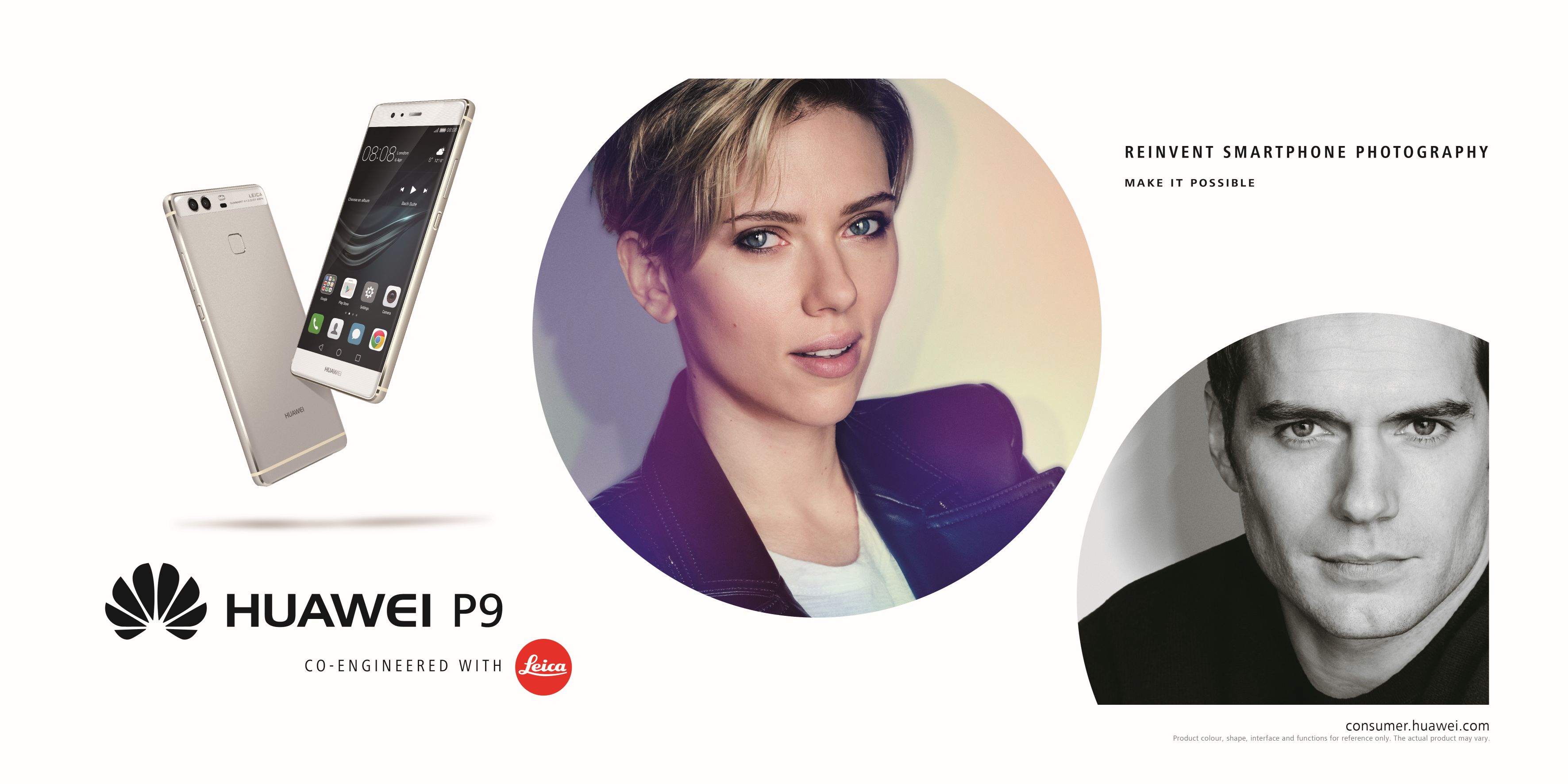 A Huawei a londoni Battersea Evolutionban tartott rendezvényen leplezte le legújabb televíziós reklámfilmjének előzetesét, amely a vállalat két, új globális márkanagykövetének, Scarlett Johansson és Henry Cavill színészek főszereplésével készült. Az előzetesben exkluzív kulisszák mögötti felvételeket mutatott a vállalat a két világsztár shanghai-i és hollywoodi találkozásáról. A P9 bemutatóján két top fényképész, Mary McCartney és David Guttenfelder is csatlakozott Henry Cavillhez.
