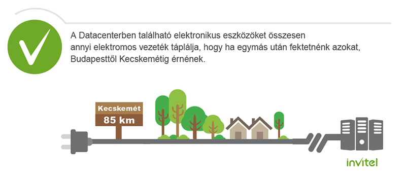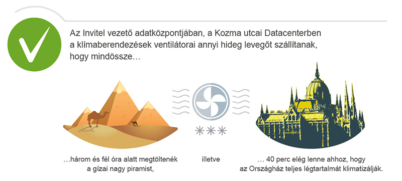 Tudta-e Ön például, hogy a Datacenterben a klímaberendezések ventilátorai annyi hideglevegőt szállítanak, hogy mindössze 40 perc elég lenne az Országház teljes légtartalmának klimatizálásához? Kitalálnák-e, hogy az épületben található akkumulátorok, amelyek a szünetmentes működést is biztosítják, akkora kapacitással rendelkeznek, hogy segítségükkel egy középkategóriás, ötszemélyes elektromos autó oda-vissza akár négyszer is megtenné a Budapest-London távolságot?