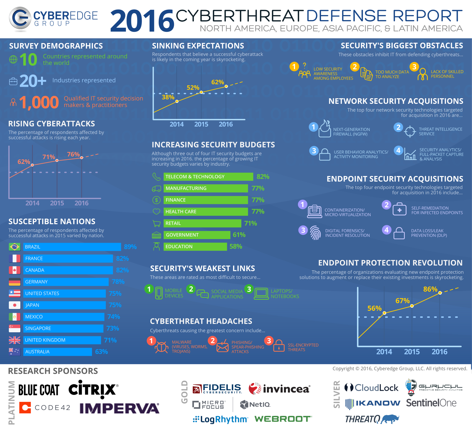 A felmérést idén harmadik alkalommal készítették el mintegy 1.000 szakképzett IT-biztonsági döntéshozó, illetve gyakorló szakember részvételével Európában, Ázsiában, valamint Észak- és Dél-Amerikában. A válaszadók 500-nál több alkalmazottat foglalkoztató nagyvállalatoknál dolgoznak, és összesen 19 különböző iparág képviselői közül kerültek ki.