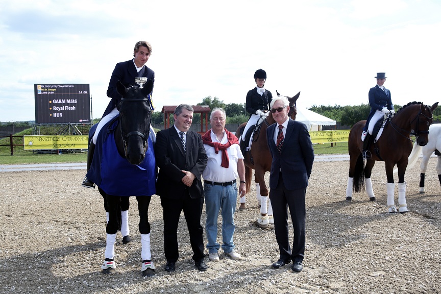 A Nemzetközi Intermediate I Kűr (Nemzetközi verseny) első helyezettje Garai Máté, Royal Flesh nevű lovával