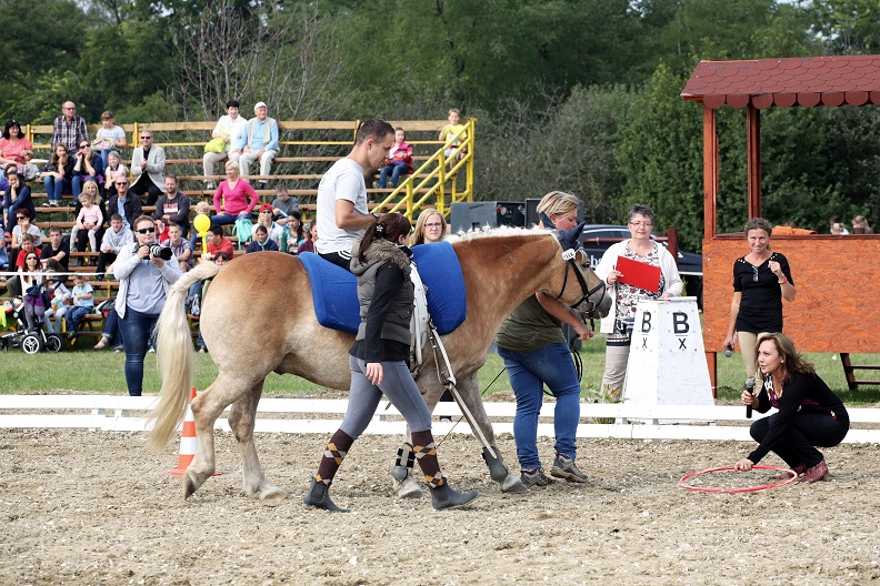 Vasárnap is kegyes volt a szervezőkhöz az időjárás, továbbra is sütött a nap, ami még inkább megkönnyítette a versenyzők dolgát. A délelőtti lovasterápiás versenyek házigazdája Szarvas Gábor, a Budapest Airport Közösségi Kapcsolatok igazgatója volt.