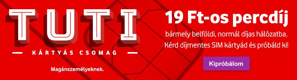 A Vodafone Tutival az egységesen bruttó 19 Ft-os perc és SMS díj mellett