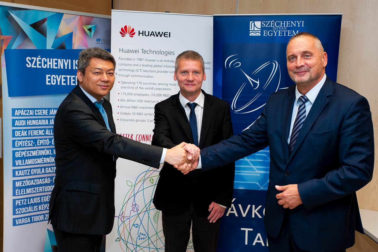 által definiált hálózat (softwer defined networking – SDN) területén, emellett az együttműködés részeként az egyetem oktatói és a Huawei szakemberei közös tananyag-fejlesztési projekten is dolgoznak. A fejlesztés célja egy olyan tananyagcsomag elkészítése, amely a rendkívül gyorsan változó IT világban is naprakész felkészültséget, tájékozottságot biztosít a hallgatók számára.„A számítógép átadása folytatása annak a megállapodásnak, amelyról szándéknyilatkozatot Szíjjártó Péter külgazdasági és külügyminiszter jelenlétében írtunk alá tavaly Pekingben, majd konkretizáltuk az együttműködést idén májusban.“ – mondta Zheng Weifeng, a Huawei Technologies Hungary vezérigazgatója. „A Huawei és a Széchenyi István Egyetem célja, hogy a következő években tudásunk és tapasztalataink kölcsönös megosztásával közösen gondolkodhassunk a jövő IT szakembereinek képzésén, valamint egy jobban összekapcsolt Magyarország megteremtésén és fenntartásán” – tette hozzá.
