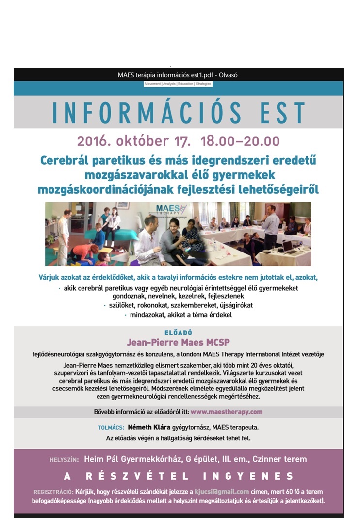 Jean-Pierre Maes nemzetközileg elismert szakember, aki több mint 20 éves oktatói, szupervízori és tanfolyam-vezetői tapasztalattal rendelkezik. Világszerte kurzusokat vezet cerebral paretikus és más idegrendszeri eredetű mozgászavarokkal élő gyermekek és csecsemők kezelési lehetőségeiről. Módszerének elmélete egyedülálló megközelítést jelent ezen gyermekneurológiai rendellenességek megértéséhez.