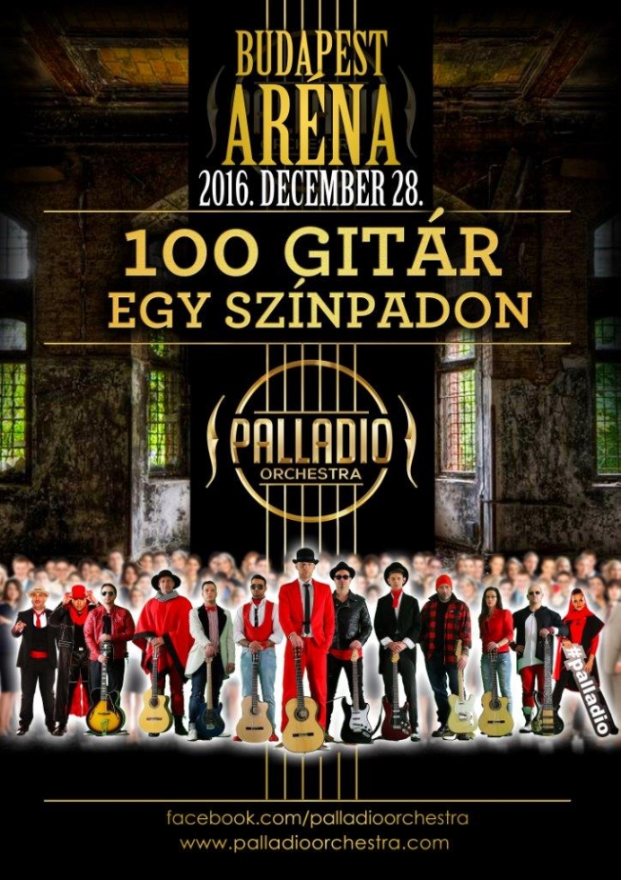 A december 28-án bemutatkozó Palladio Orchestra nem egyszerűen virtuóz produkció, hanem a maga nemében egyedülálló zenei csemege is. 10 szólista, 90 ritmusgitáros, 2 énekes, 1 dobos és 1 DJ varázsolja el világon egyedülálló produkciójával az Aréna közönségét. Különleges utazásra visznek, ahol sok állomást végigjárhatunk Beethoventől Pharell Williamsig, a Queentől a legismertebb filmzenékig. Mindezt a legfrissebb zenei világnak megfelelően, látványos vizuális- és show elemekkel kiegészülve.