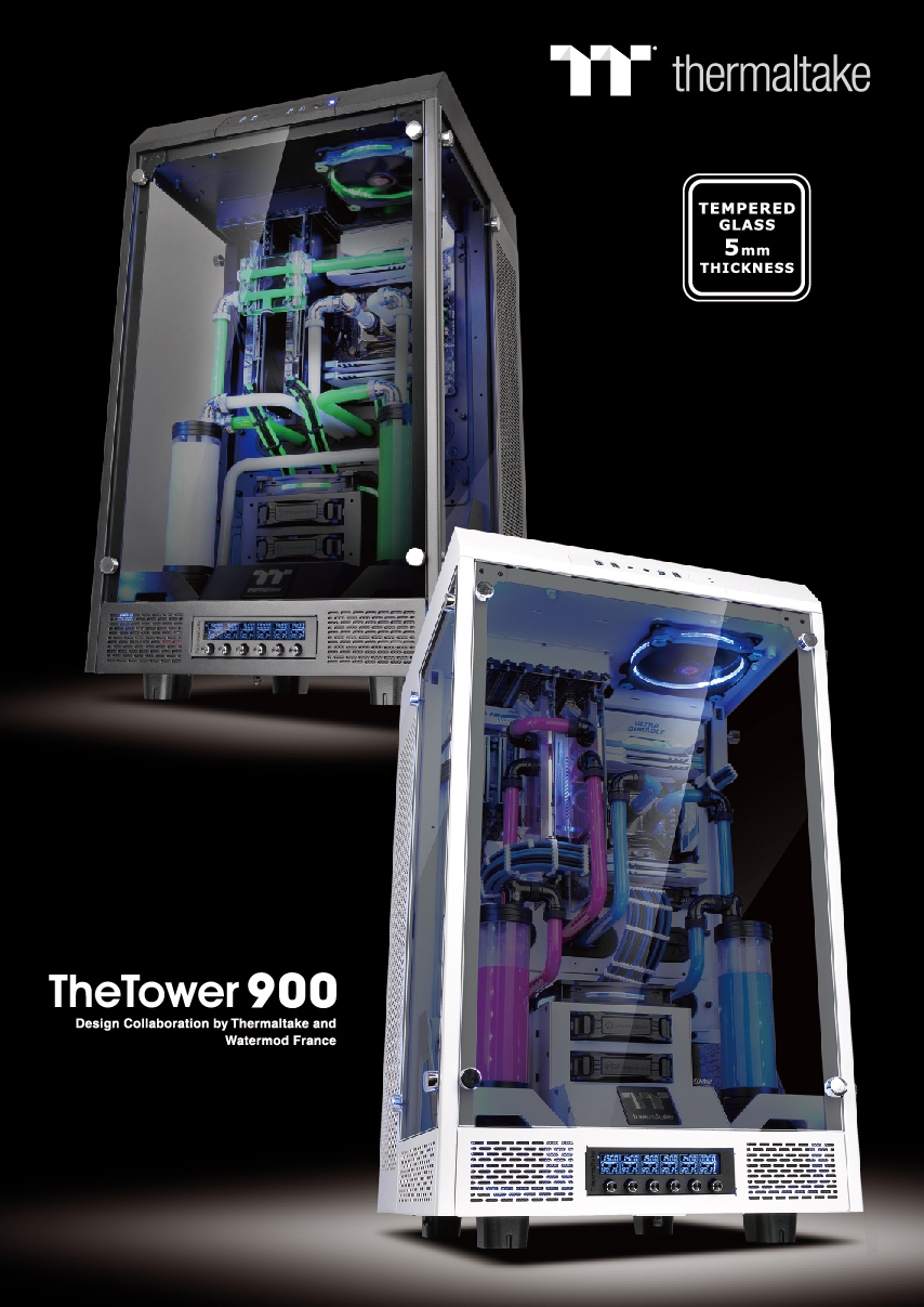 A Thermaltake prémium vízhűtéseket gyártó márkája a TT Premium egy már régóta várt projektet mutat be a Project The Tower 900 TG teljes méretű házzal. A szinte mindenhonnan tökéletes betekintést nyújtó számítógépház „ablakai” 5mm vastag edzett üvegből. A projektben nem csak a Thermaltake vett részt, hanem Mathieu Heredia a WaterMOD France tulajdonosa is. Heredia a 2015-ös Thermaltake CaseMOD Invitational Season keretében ismertette elképzelését, hogy egy letisztult, mindenhonnan jól látható és a beltér szépségét kihangsúlyozó műalkotást szeretne létrehozni, mely akár egy lakás dísze is lehet. A már gyártásba kerülő ház, pont ezért két fajta színben rendelhető, feketében és fehérben. Az eredeti ötletet a Thermaltake továbbfejlesztette és annak megfelelően módosította a belső tér kialakítását, hogy az könnyen szerelhető és tágas legyen, valamint a letisztultság érdekében a kábelek is elrejthetők.