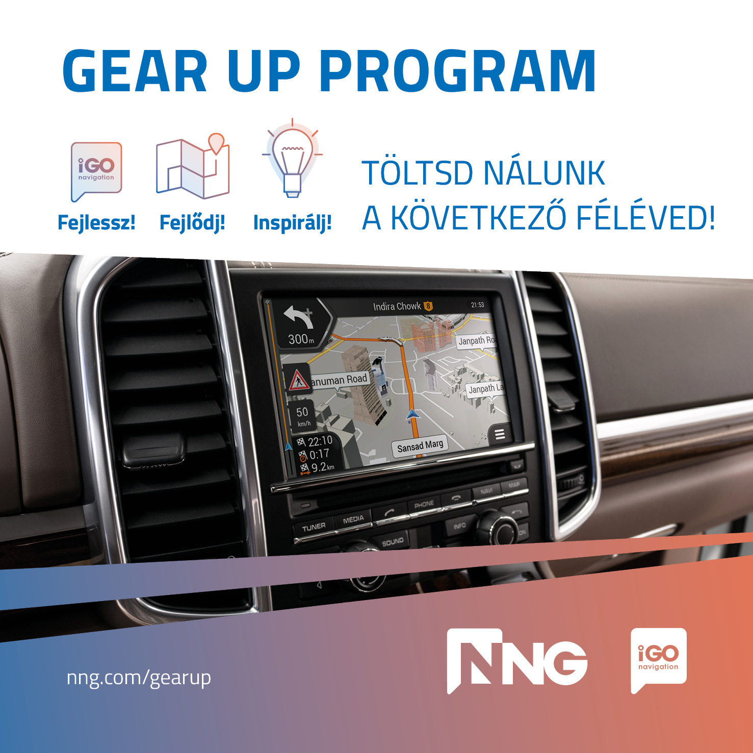 jel, hogyan lehet különböző operációs rendszerekre optimalizálni navigációt, illetve olyan eszközöket fejleszthetnek, amik később megkönnyítik a fejlesztő kollégák mindennapi munkáját.Magyari Andrea, az NNG HR vezetője szerint ezek a lehetőségek teszik igazán vonzóvá az NNG-t a fiatalok körében: „Folyamatosan igyekszünk bemutatni az IT szektor igazi arcát és arra biztatni a fiatalokat, hogy ismerjék meg az IT kihívásokat és globális projekteket kínáló oldalát az NNG-nél. A harmadik alkalommal meghirdetett Gear Up Program is ezt a célt szolgálja, itt is igyekeztünk a fiatalok igényeit szem előtt tartani a tervezés során.”