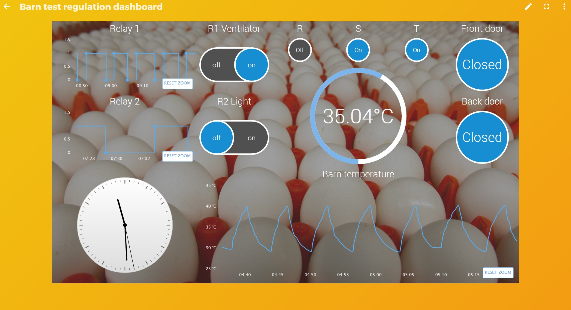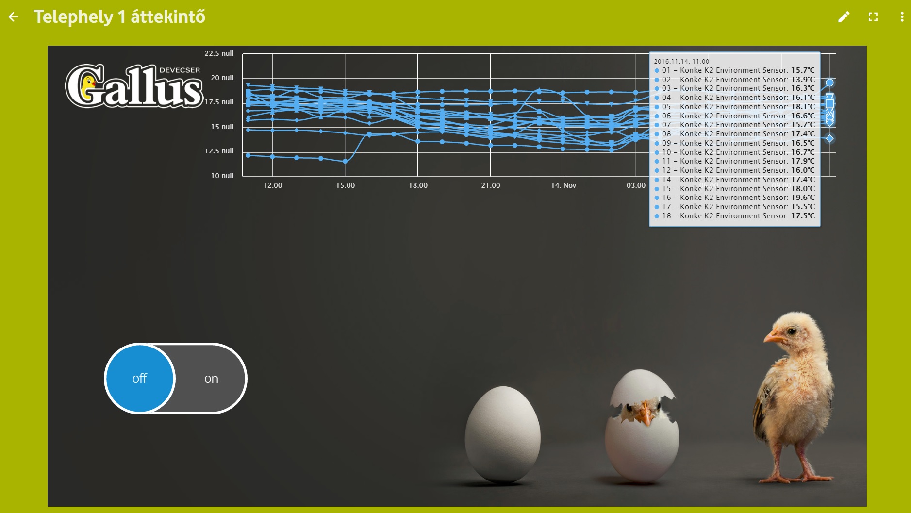 csatlakozásra, így a távoli elérés lehetősége is biztosított. Ennek köszönhetően a világ bármely pontján értesülhetünk a megfigyelt környezet aktuális állapotáról. Az egyedi igényeknek megfelelően szerkeszthető webes felület alkalmas riasztási üzenetek azonnali küldésére, amennyiben a mért, vizsgált paraméterek bármelyike eléri, vagy meghaladja a felhasználó által beállított határértéket, időintervallumot.További fejlesztési lehetőségek közé tartozik a siló telítettségmérés rendszerbe integrálása, valamint tojásszámlás automatizálása. A fejlesztés alatt álló kamera alapú tojásszámláló rendszer képes a tojások méret, szín alapú monitorozására és természetesen szükség esetén azonnali riasztás küldésére is.