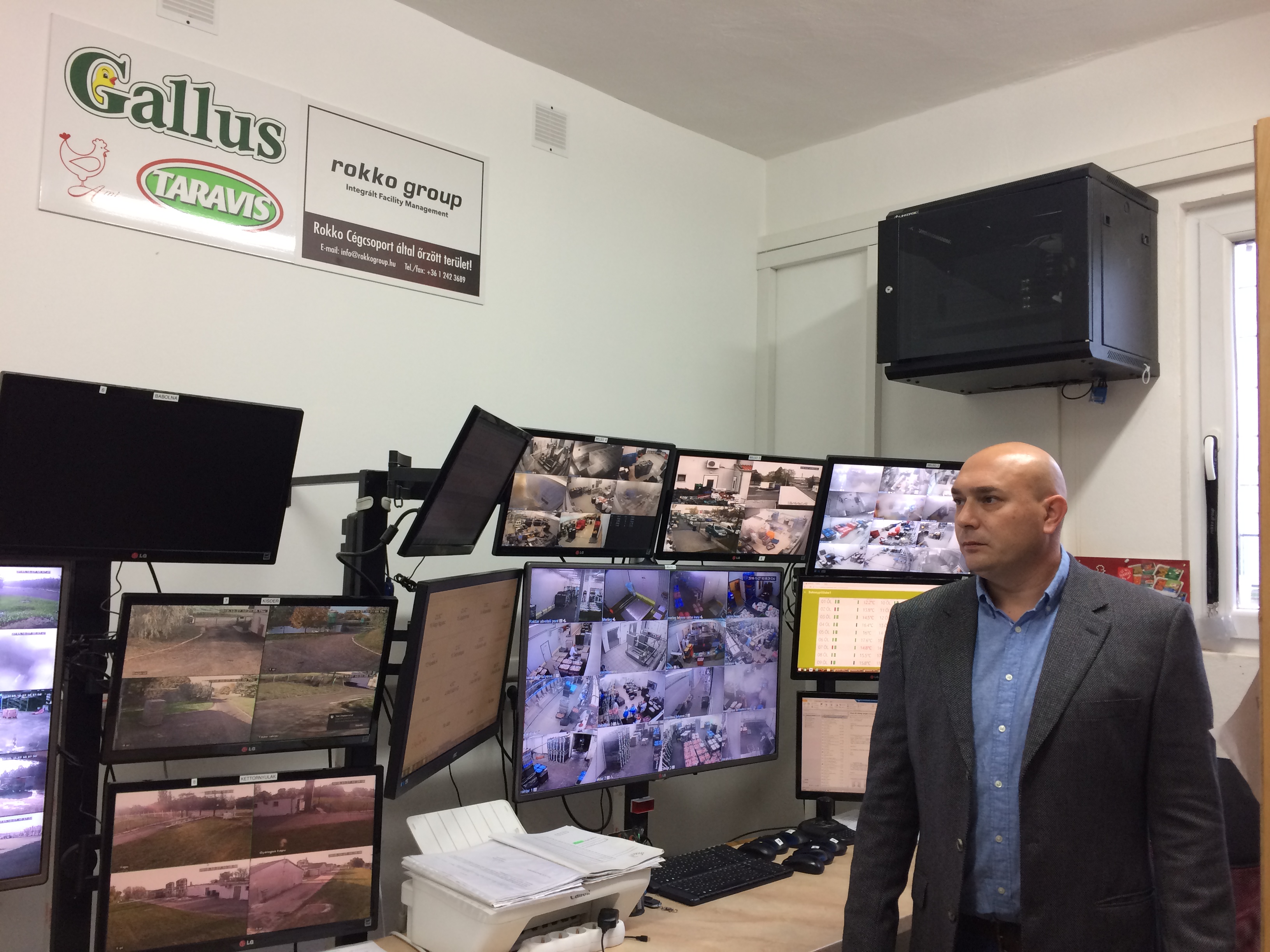 2015-ben hoztuk meg azt a döntést, hogy még biztonságosabbá tesszük működésünket. Az elmúlt egy évben folyamatosan építettük ki azt a biztonságtechnikai és távfelügyeleti rendszert, amely még nagyobb biztonságot nyújt a kihelyezett csirkeállomány részére és ezzel egyidejűleg megtakarítást és hosszabb távon bevételi forrást biztosít a Gallus-csoport számára. 2015-ben létrehoztunk egy 24 órás biztonsági központot, ahol tapasztalt és képzett vagyonvédelmi szakemberek felügyelik a telephelyeinket, ezt pedig fejlett, a mai kor igényeinek megfelelő biztonságtechnikai eszközökkel szereltük fel. Minden telephelyünk a nap 24 órájában videó kamerákkal megfigyelt. Az élőképeket a biztonsági központ munkatársai folyamatosan elemzik, esetleges rendkívüli esemény észlelésekor azonnal az esemény típusától függően teszik meg a továbbiakban szükséges intézkedéseket. A biztonsági központ továbbá rendelkezik