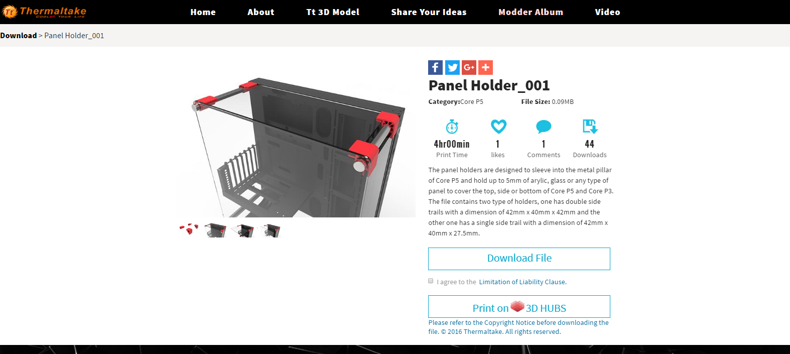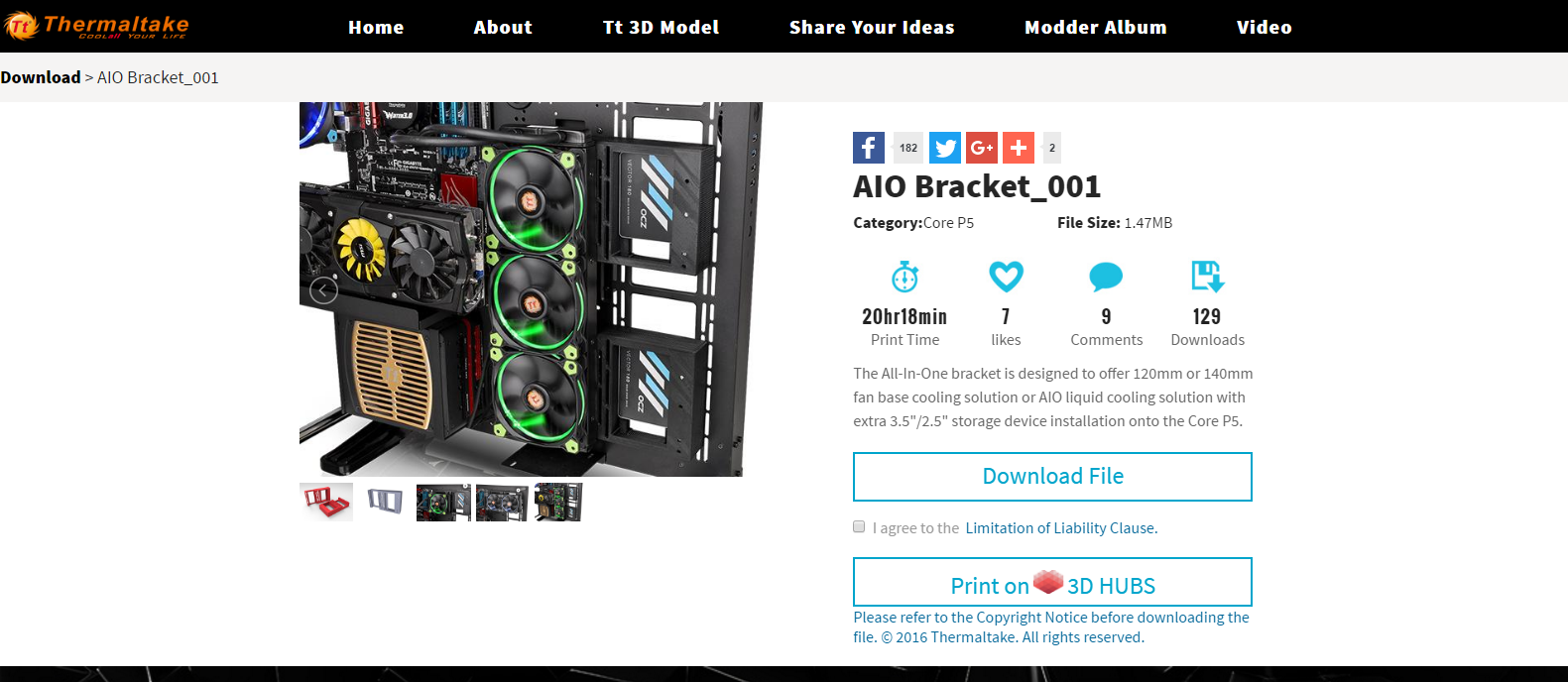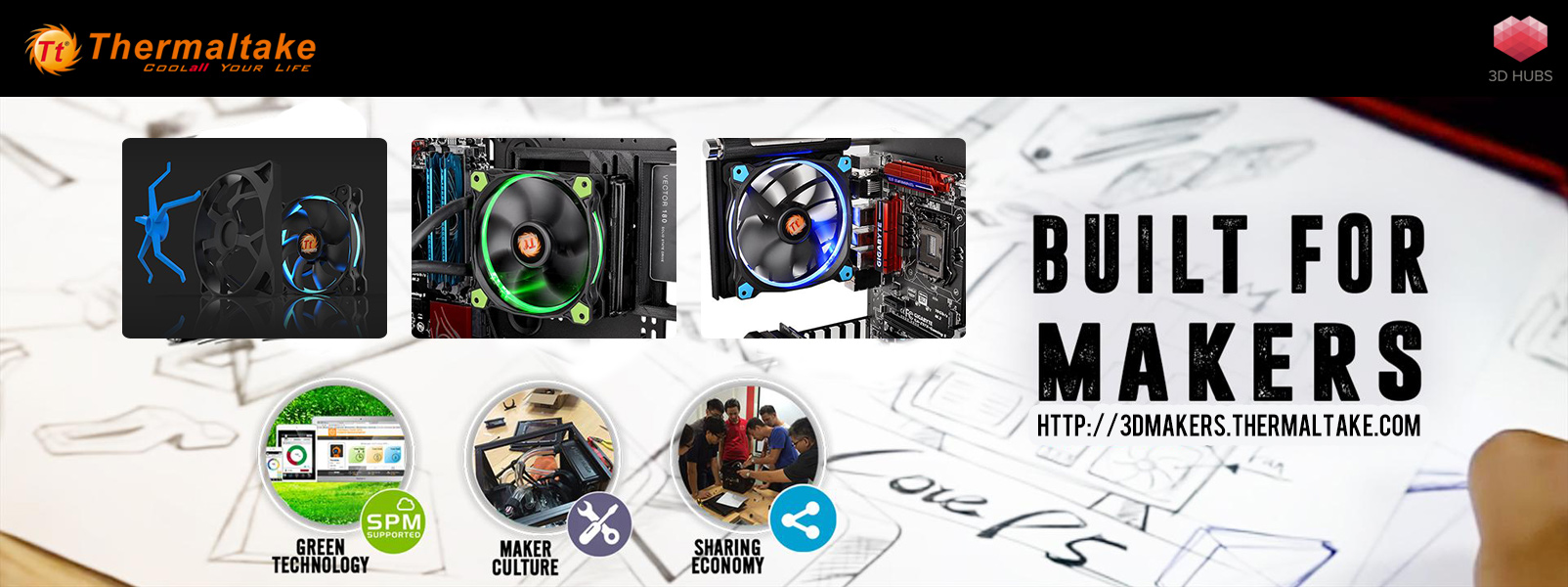 nyomtatott számítógép-komponensek és a 3D Hubs a világ legnagobb 3D nyomtatási szolgáltatója bejelentették együttműködésüket, hogy a modderek és a hobbi felhasználók számára egy gyorsabb és költséghatékonyabb elérést biztosítsanak a 3D nyomtatási technológiához. A tajvani székhelyű Thermaltake már 2015 óta a „Maker Movement” programján keresztül támogatta ezt a törekvést. A 3DMakers.thermaltake.com az első 3D