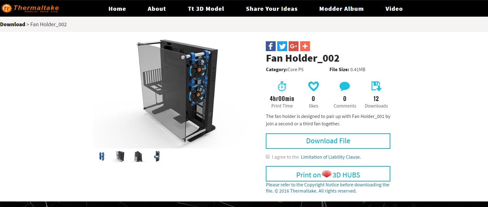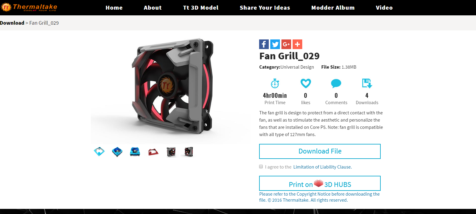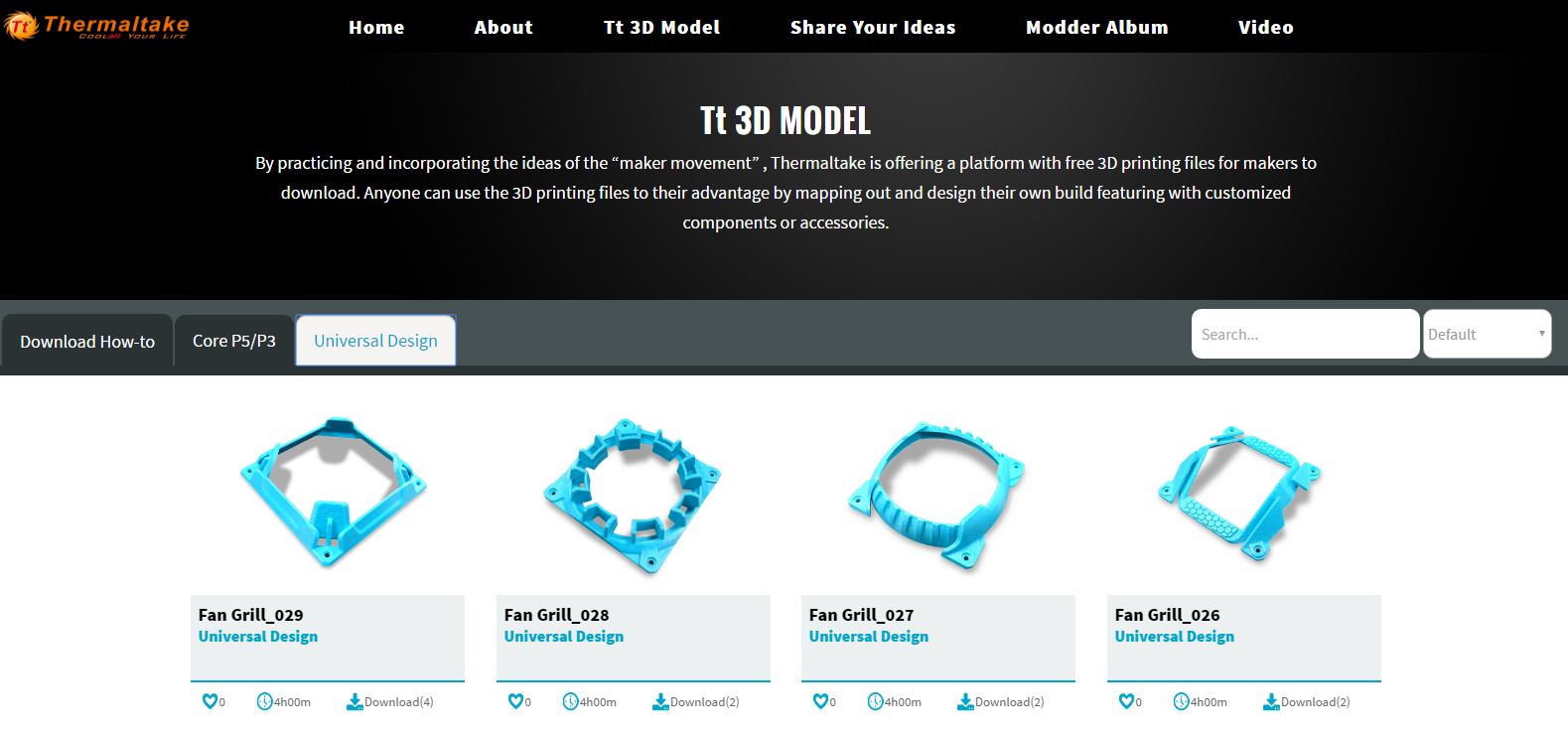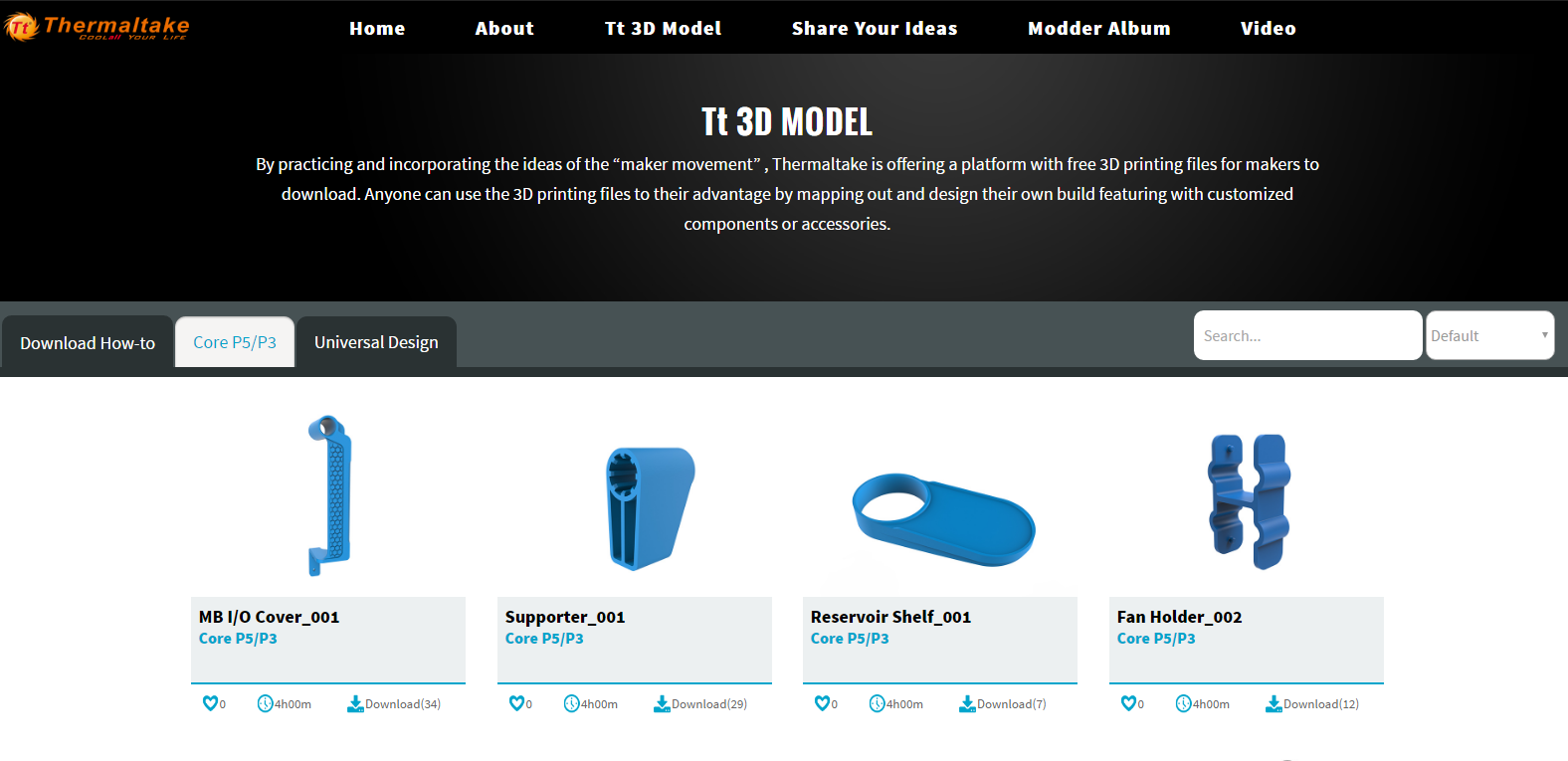 A 3D nyomtatás új korszakában a Thermaltake folyamatosan fejleszti 3D modelljeit, melyet a 3DMakers.thermaltake.com-on ingyenesen tesz elérhetővé. Eközben természetesen ösztönzi is a moddereket és a 3D nyomtatás fanatikusait, hogy csatlakozzanak és osszák meg 3D terveiket a program keretében.