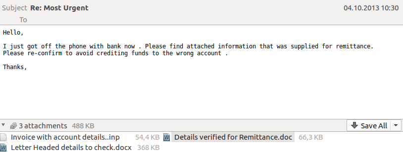 Példa adathalász e-mailre az InPage szoftver dokumentumában