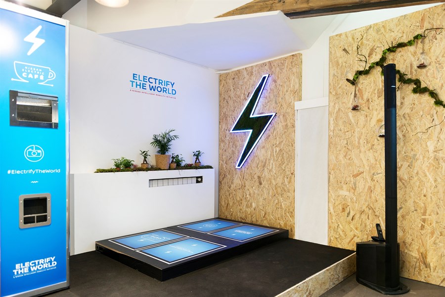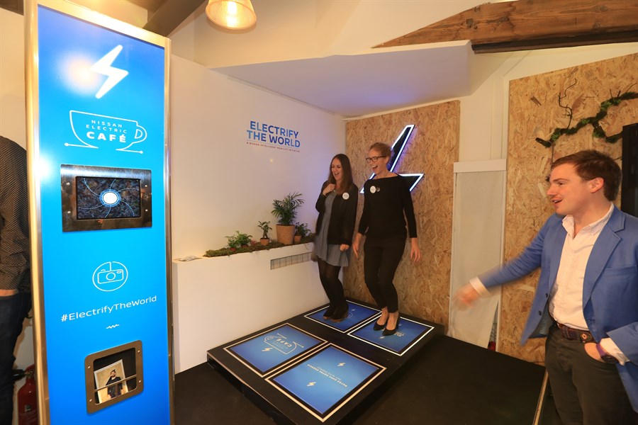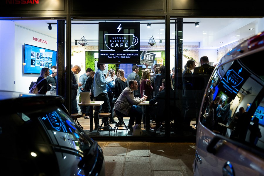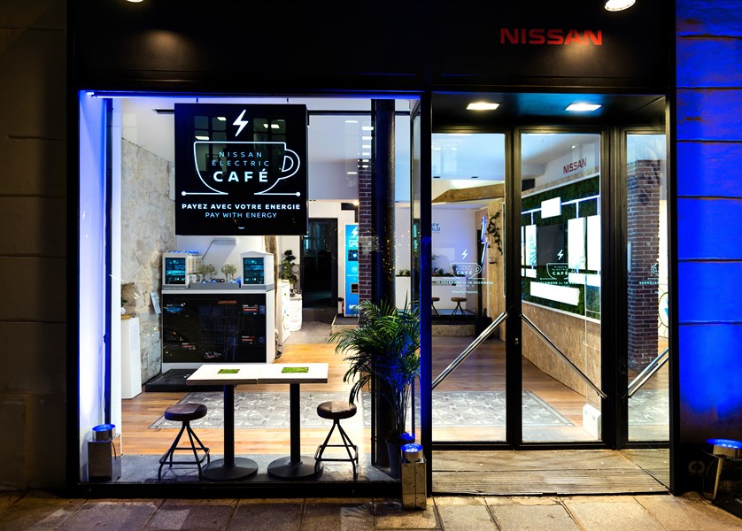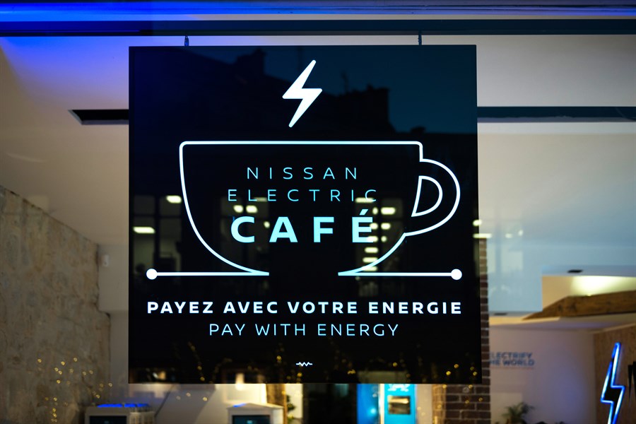 A Párizsban található kávézó rövid ideig, mindössze december 16–18. között áll nyitva a nagyközönség számára. A Nissan Electric Café lehetővé teszi vendégei számára, hogy csúcstechnológiás megoldásokkal maguk generálhassanak energiát. Ezzel aztán különböző termékekért és szolgáltatásokért fizethetnek, maguk is megtapasztalva az elektromos életstílust.