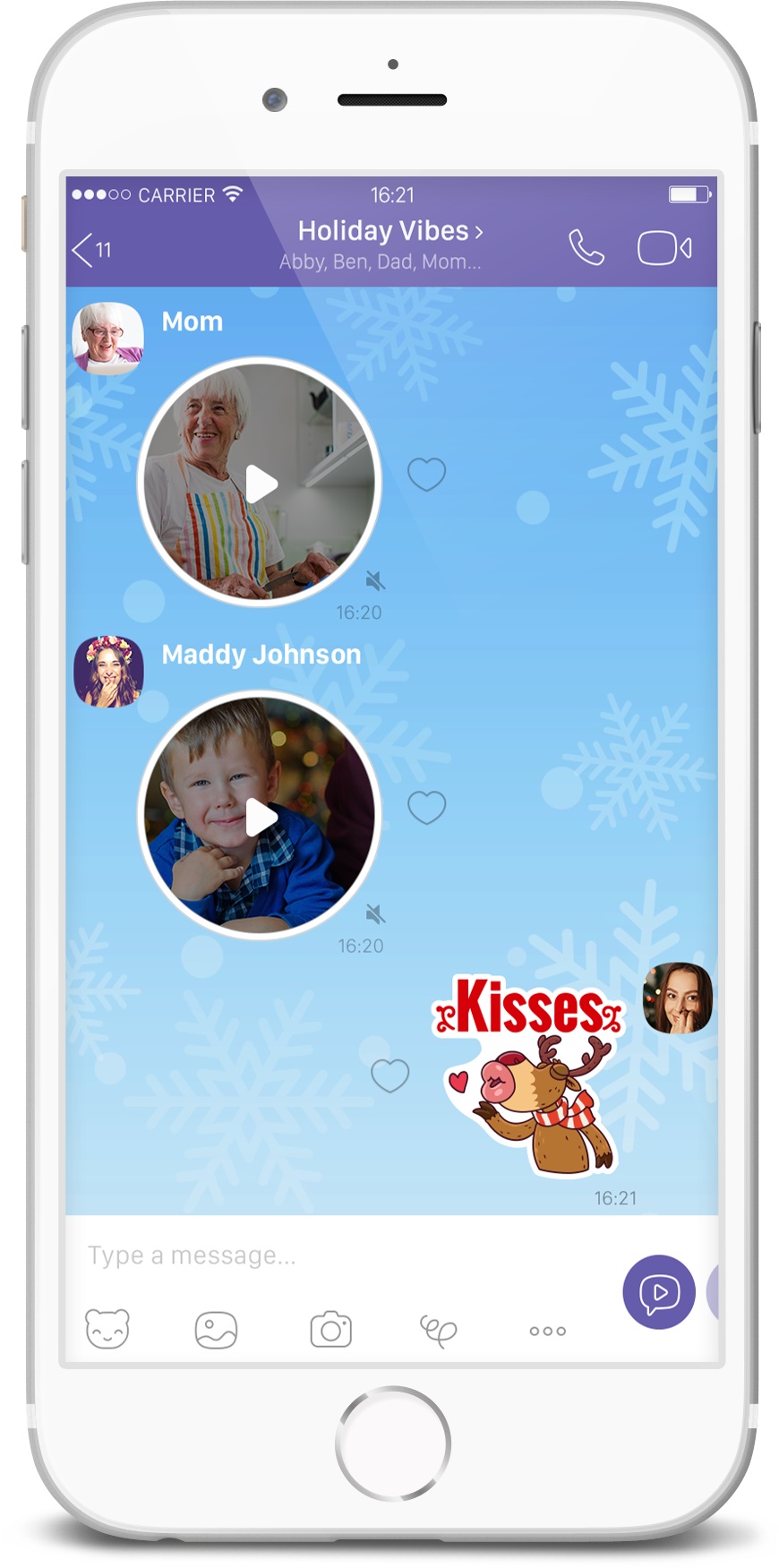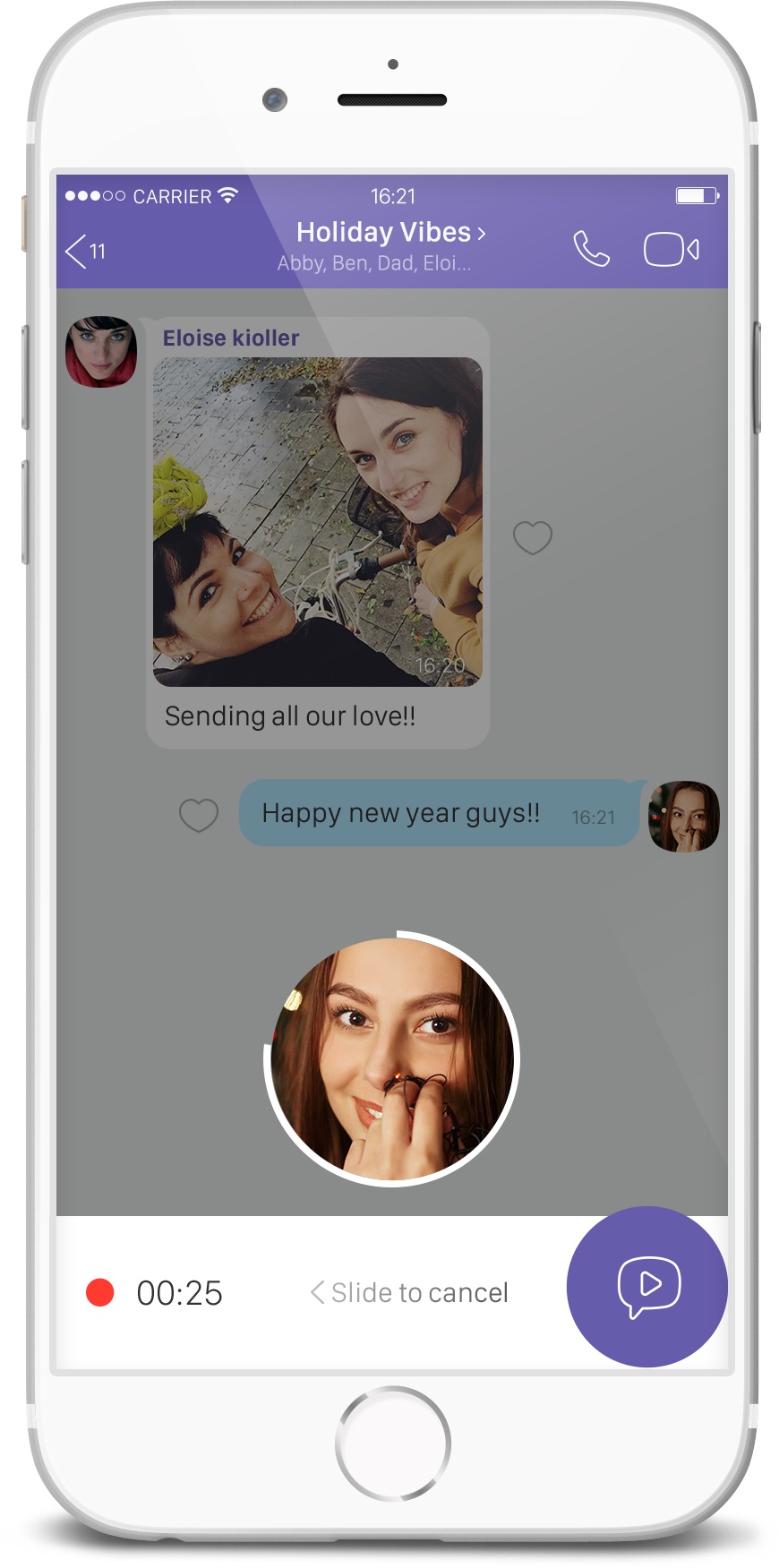 Csupán egy gyors gombnyomás, és a felhasználók videóüzeneteket rögzíthetnek barátaiknak. Az új funkció közvetlenül a csevegés ablakban található, a hangüzenet gomb gyors elcsúsztatásával lehet hozzáférni, így a felhasználók könnyen válthatnak a hang- és videóüzenetek között. A Viber instant videóüzeneteivel maximum 30 másodperces, ismétlődő videók készíthetők.