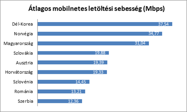 Ugyanakkor a mérési átlagok alapján 31,04 Mbps-os mobilnetes letöltést kínáló Magyarországgal szomszédos államok mindegyikében jelentősen lassabb letöltési sebességeket mértek: Romániában 13,21 Mbps-ot, Szlovákiában 19,88 Mbps-ot, Ausztriában 19,39 Mbps-ot, Szlovéniában 14,45 Mbps-ot, Horvátországban 19,33 Mbps-ot, Szerbiában pedig csupán 12,36 Mbps-ot.