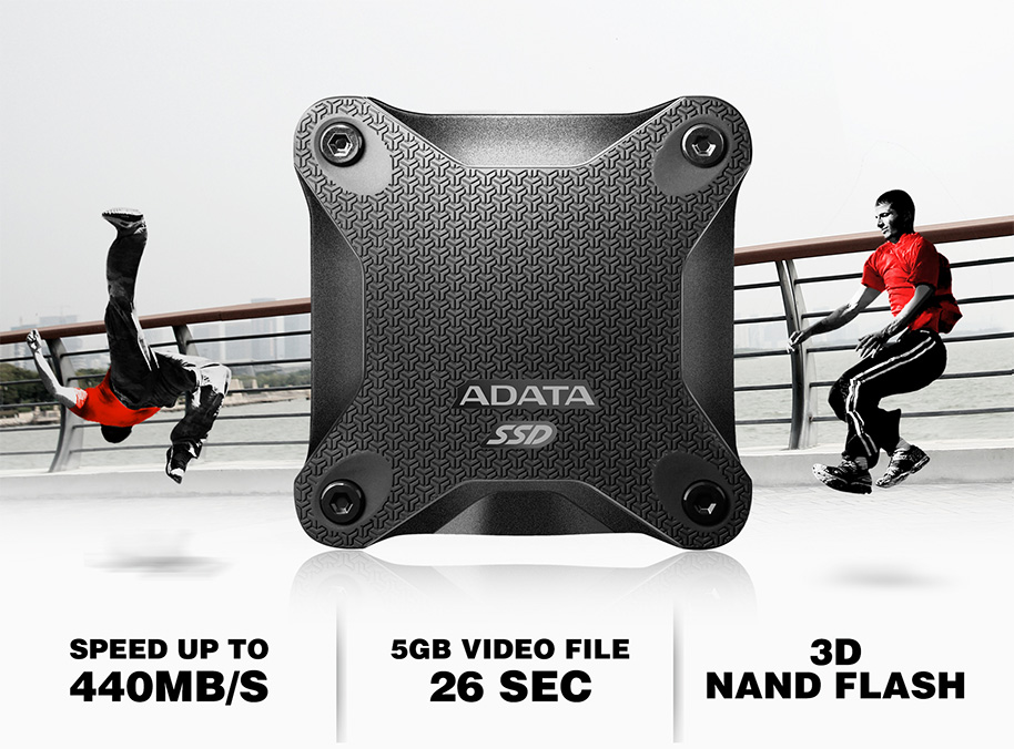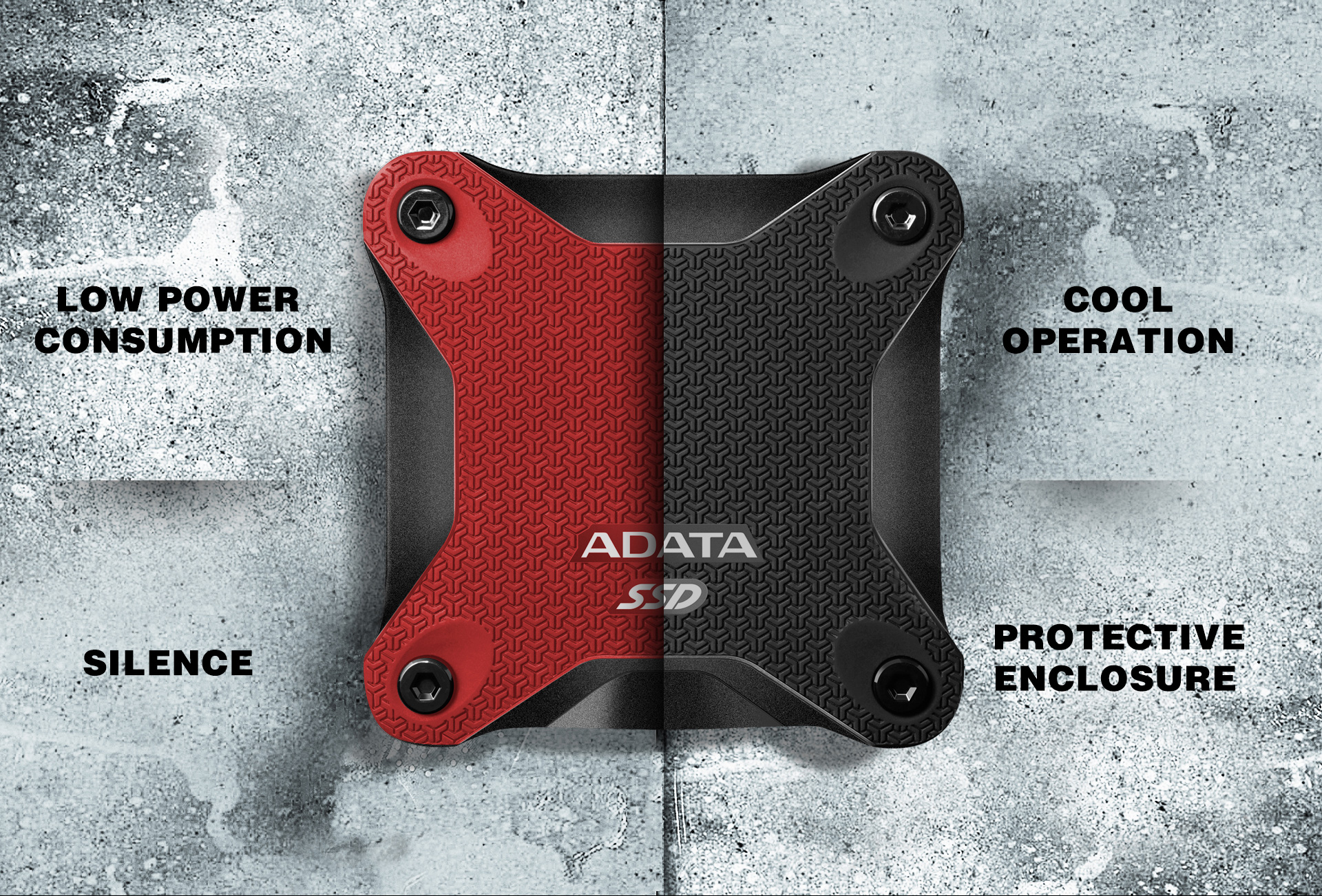 TLC NAND chipekre épül és elérhető 256GB és 512GB méretben. A meghajtók elérhetik a 440MB/s olvasási- és 430MB/s írási sebességet, így könnyen felülmúlják a külső winchestereket. Mindössze 90g a kényelmes hordozhatóságért és meghajtóprogram nélkül működik Windows PC, Xbox One, PS4 és Android eszközökkel egyaránt. Az SD600 elérhető teljesen fekete és vörös-fekete színekben, valamit ütésálló és sportos tokozásával az aktív életmódot kedvelők kedvence lesz. A külső tárolóeszköz, mely egyben teljesítménynövelő is