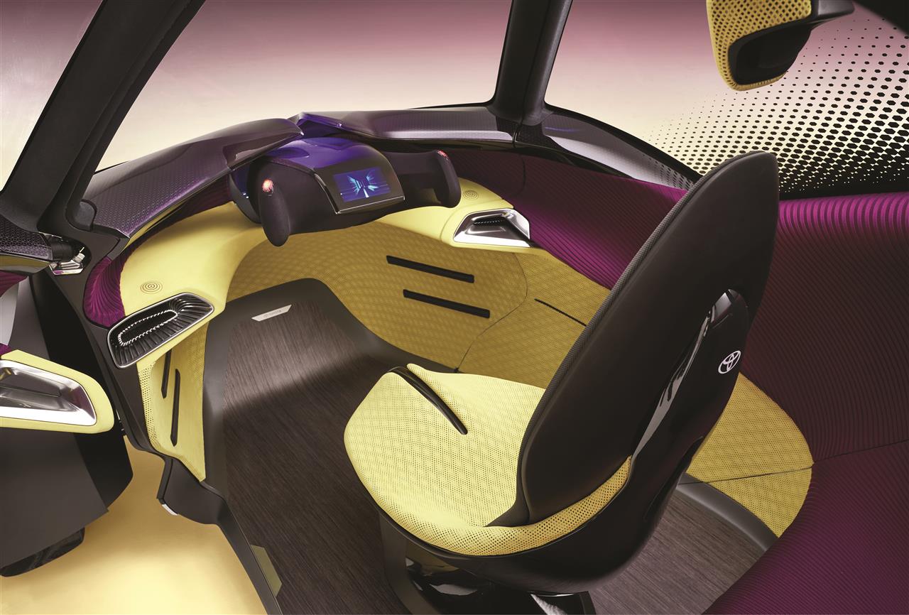 Egy-plusz-Kettes üléselrendezésével az i-TRIL újraírja a belső tér és a tágasság fogalmát. A mai autók belsőépítészete azon alapul, hogy mindent a vezető körül kell elrendezni, miközben a hátul ülők kifejezetten elhanyagoltnak érzik magukat. Az Active Lean technológiának köszönhetően az i-TRIL kabinja olyan tér lett, ahol a hátsó üléspadon utazók inkább részeseivé válnak a vezetési élménynek. Ráadásul ezzel a megoldással a gyerekek közelebb ülhetnek édesanyjukhoz, méghozzá anélkül, hogy megtörnék az ő személyes terét. De még ennél is fontosabb, hogy az utasok sokkal jobban kilátnak előre, hiszen nem takarja ki előlük a látvány nagy részét az első ülés fejtámlája. Az első fejtámla egyébként a tetőhöz van rögzítve, és csak az i-TRIL beindításakor nyílik le. Az első ülés mindkét oldalán kényelmes, tágas lábtér nyílik a gyerekek számára, de három felnőtt is jól elfér a kabinban. A tervezők nagy figyelmet fordítottak arra, hogyan tud a vezető a lehető legkényelmesebben ki- és beszállni.Nyitáskor az ajtókkal együtt a padló egy része is szabaddá válik, így sokkal könnyebb kilépni a járműből. Ráadásul ilyenkor az első ülés is 20 fokkal elfordul, hogy a vezető még elegánsabban tudjon kiszállni vagy beszállni.