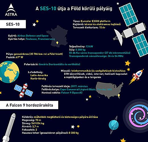 Az ASTRA műholdas hálózata már több mint 20 éve biztosít megbízható televíziós, valamint rádiós közvetítéseket és multimédia szolgáltatásokat Európa-szerte a telített földfelszíni és kábel TV-s, valamint internetes piacokon. Nemrég ezen műholdak üzemeltetője, a SES bejelentette, hogy legújabb műholdjuk, a SES-10 a tervek szerint márciusban pályára áll a SpaceX Falcon 9-es újrafelhasználható hordozórakétájának segítségével, hogy geostacionárius pályáján növelje a SES kapacitását Latin-Amerikában. A SES-10 lesz az első olyan műhold, melyet a Falcon-9 segítségével állítanak geoszinkron pályára. De hogyan jutott el a fellövésig a szatellit? Ki volt a gyártója, és mi lesz a feladata? A SES Astra felfedi a részleteket és az előkészületek során készült képeket.