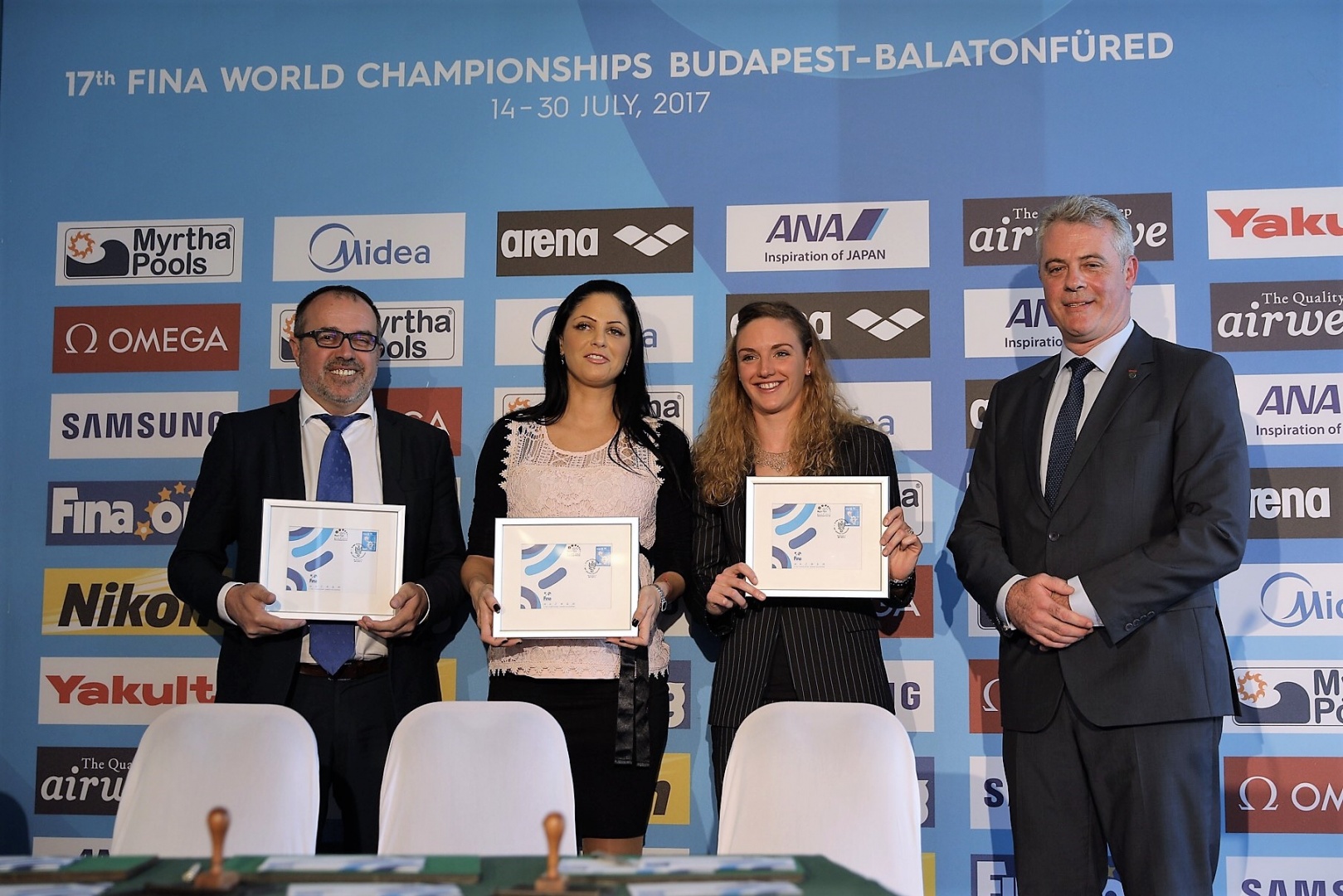A Bp2017 Világbajnokságot Szervező és Lebonyolító Nonprofit Kft. a nyári vizes világbajnokságot megelőző századik napon sajtótájékoztatón mutatta be a 17. FINA Világbajnokság kapcsán kibocsátott FINA bélyeget. Az eseménynek a világbajnokság szinkronúszó versenyszámainak helyszíne, a Városliget adott otthont.
