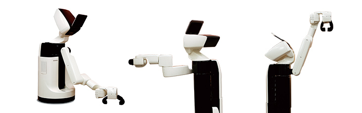 - Embereket Segítő Robot (HSR): A hangvezérléssel vagy tableten keresztül is irányítható HSR egy remekül manőverező, kompakt és könnyű robot, amely hajlítható karjával képes tárgyakat felvenni a földről, leemelni dolgokat a magas helyekről, elhúzni a függönyt és elvégezni egyéb ház körüli teendőket.