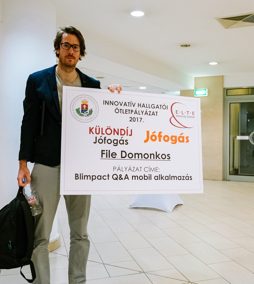 Az ELTE Innovatív Hallgatói Ötletpályázatának célja, hogy a tehetséges hallgatók elképzeléseit a társadalom számára hasznos, piacképes megoldássá formálja, a legnagyobb apróhirdetési portál pedig a megvalósításhoz nyújt gyakorlati segítséget. A tender különdíjának nyertese, File Domonkos és csapata így egy neves, külföldi szakmai konferencián vesz majd részt, valamint egy teljes körű, projektre szabott mentorprogramot is biztosítanak számukra, hogy ötletük mihamarabb helyt álljon a piacon is.