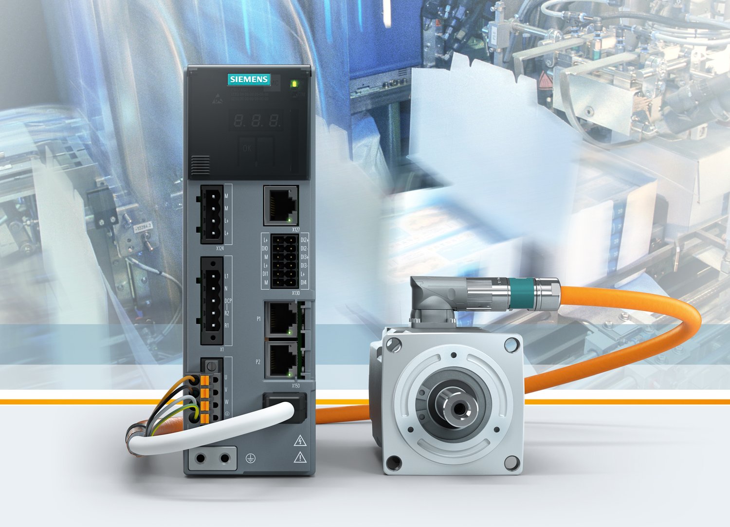 A Sinamics S210 inverterrel, melyet kifejezetten az újonnan fejlesztett Simotics S-1FK2 motorokhoz történő alkalmazásra szántak, a Siemens 50 … 750 Wattig terjedő, öt teljesítményosztállyal rendelkező, új szervohajtás rendszert kínál. Az inverterek beépített biztonsági funkciókkal rendelkeznek és gyors projektálást tesznek lehetővé. A fölé rendelt vezérléshez kapcsolódás Profinet-tel történik, az egyszerű üzembe helyezés pedig webszerveres és egygombos beállítású. A Simotics szervomotorokkal kis terhek erős dinamikával, a közepes és nagy terhek pedig igen pontosan mozgathatók. A motoroknak az inverterre csatlakoztatása egykábeles csatlakoztatással (OCC) történik. Az alkalmazások súlypontjai elsősorban a csomagolóipar, anyagmozgatás gépei – pl. Pick & Place, fa- és kerámiafeldolgozás, illetve digitális nyomtatás.