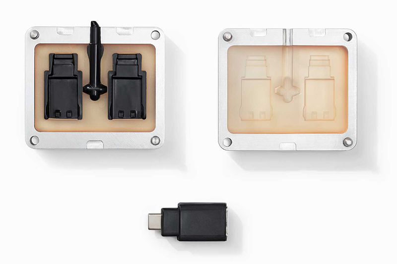 Mindazonáltal, ha a kisszériánk minden eleme egyforma, akkor érdemesebb a kiemelkedő precizitású Form 2 3D nyomtatót inkább egy vákuumöntő géppel vagy meglévő fröccsöntő gépünkkel kombinálni. A vákuumöntés gyorsabb és olcsóbb, mint a 100-500-1000 darab alkatrész 3D nyomtatása. Mesterformaként egy nagyfelbontású 3D nyomat szolgál, amelyről szilikonból készül a szerszám, egyetlen ilyen szilikonszerszámot pedig akár 25-ször is képes megönteni a vákuumöntő gép. Ezután nem feltétlen azért kell cserélni a szerszámot, mert elkopik, hanem mert kémiai reakció zajlik le a műgyanta (jellemzően kétkomponensű poliuretán) és a szilikonszerszám között.