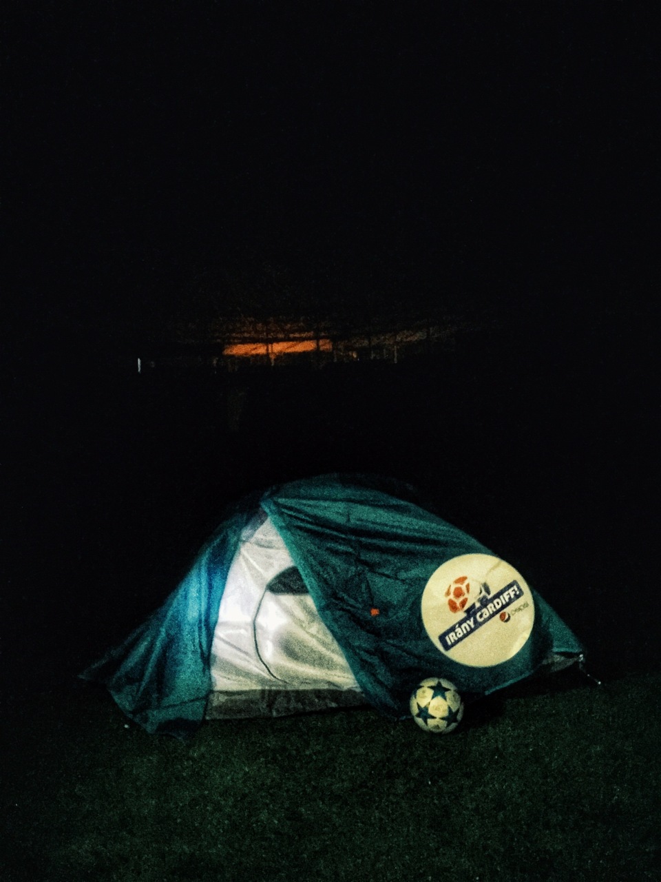 A Pepsi-kalandor a kelet-magyarországi Ibrányból, a walesi döntőtől az egyik legmesszebb eső településről indult, majd a nyírcsászári megye hármas meccsen megszerezte élete első igazi focis élményét. Az út során hősünk a debreceni Loki-stadiont is meglátogatta, sőt, az éjszakát a pályán töltötte a kezdőkör közepén egy sátorban.